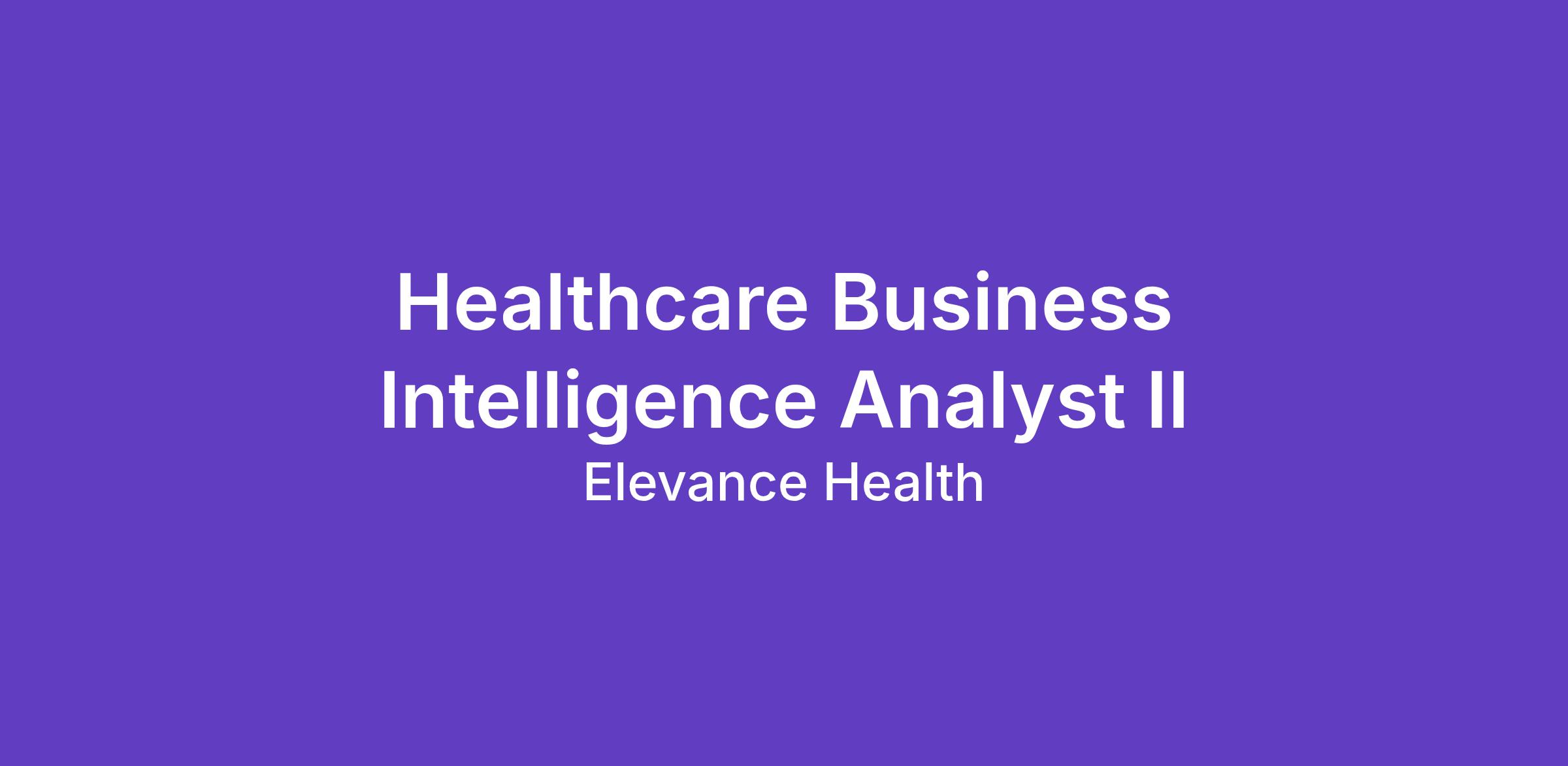 Healthcare Business Intelligence Analyst II