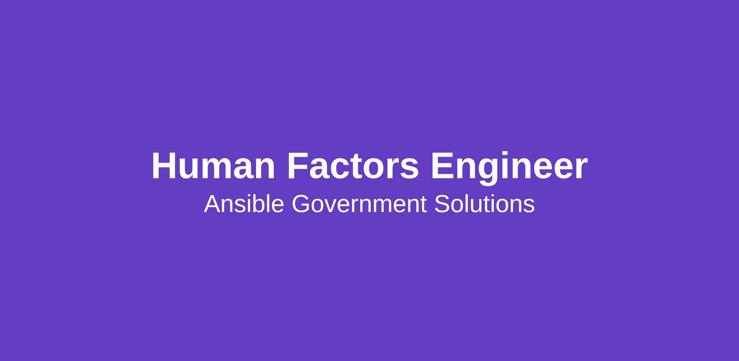 Ansible Government Solutions, LLC (Ansible) is seeking an experienced Human Factors Engineer to support the VHA Veteran Family Member Program (VFMP) Modernization initiative. In this role, you will apply human‑centered design principles to evaluate and improve user‑facing and staff‑facing systems, ensuring they are intuitive, accessible, and aligned with real‑world workflows. The Human Factors Engineer plays a critical role in enhancing usability and adoption by partnering closely with VA stakeholders within a complex federal healthcare modernization environment.