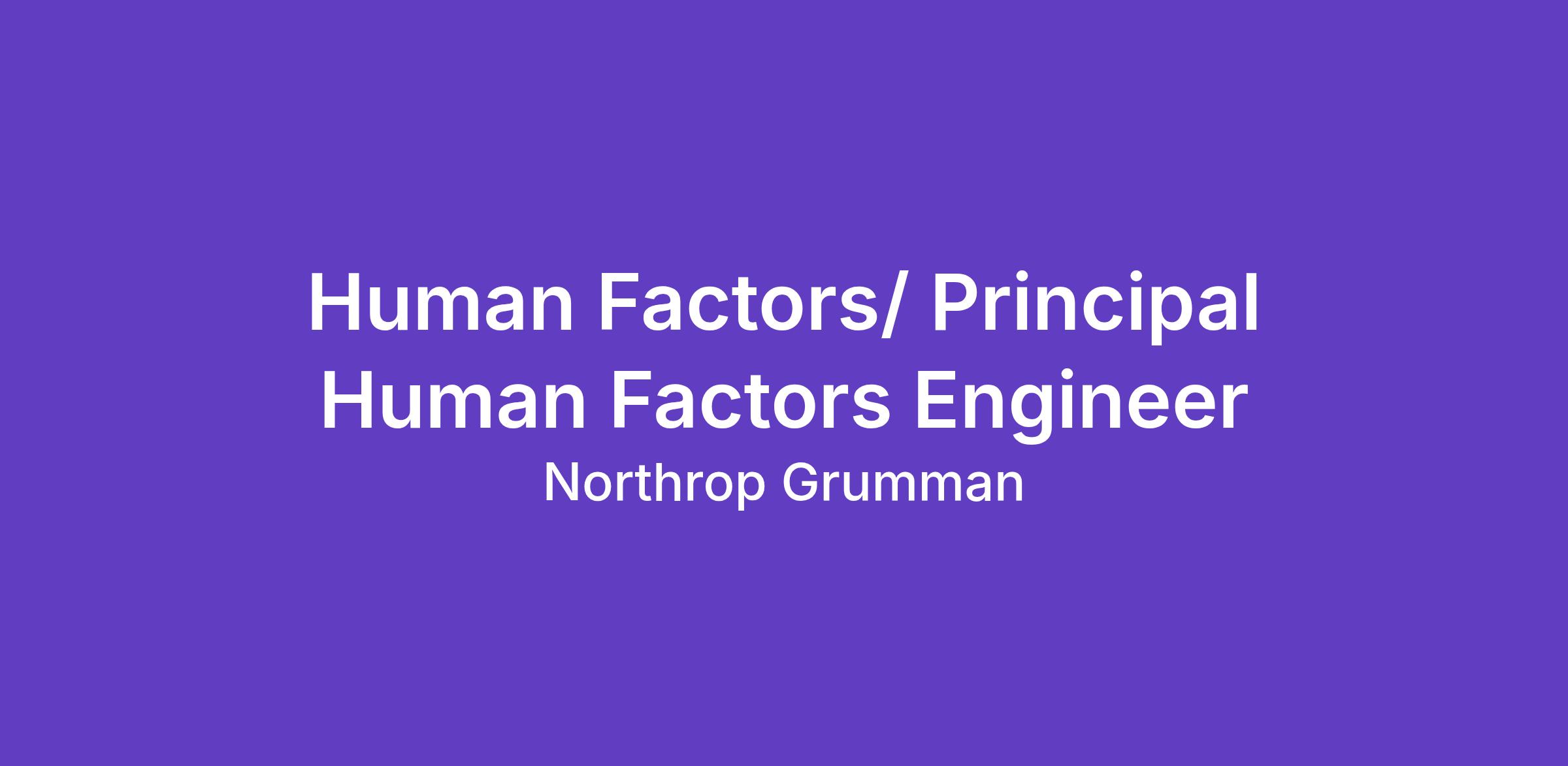 Northrop Grumman Aeronautics Systems has an opening for a Human Factors/ Principal Human Factors Engineer to join our team of qualified, diverse individuals. Position is located in Melbourne, Florida.