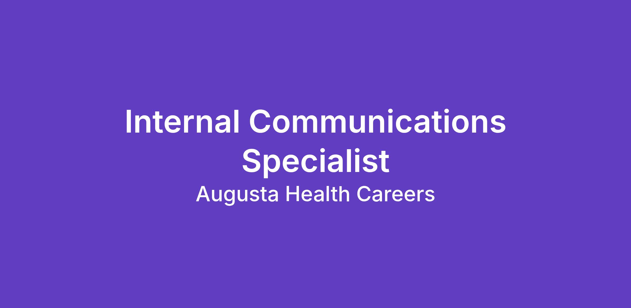 The Internal Communications Specialist will work as part of the Communications and Marketing Team and will be responsible for developing and implementing the organization's overall internal communications strategy, which reflects our values and culture. The aim of this work is to use communication to help create an inclusive environment of shared understanding, making colleagues feel informed, valued and connected with the work of the organization and its mission. Position works in collaboration with the executive team of Augusta Health and designees to collaborate and distribute messaging, prepare presentations, create internal memos, print and electronic materials, and develop branding strategies and other forms of communication for Augusta Health team members.