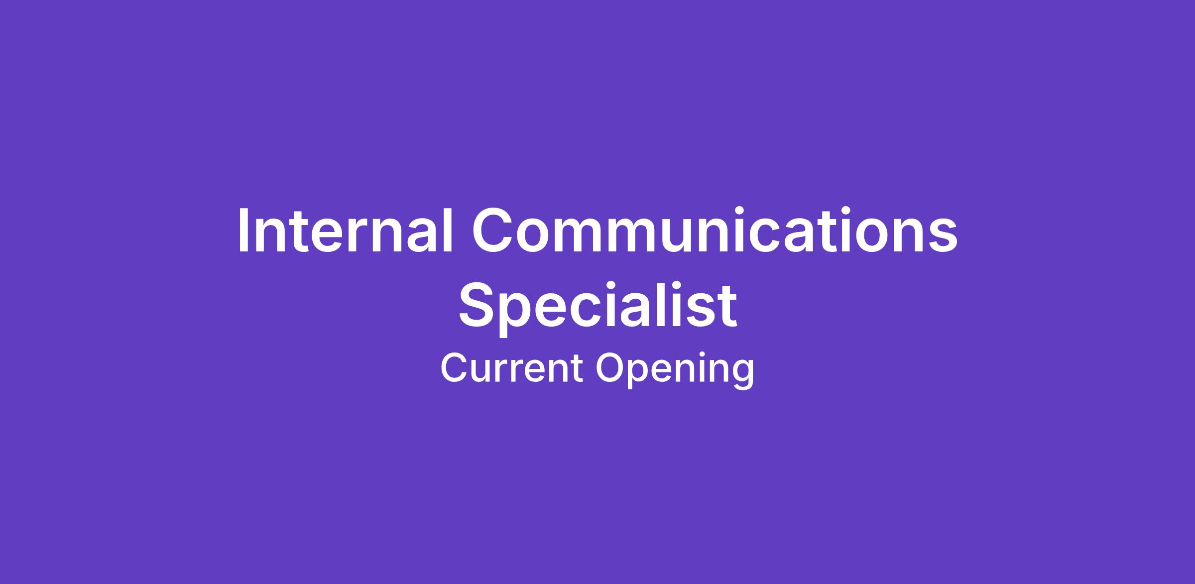 The Internal Communication Specialist must be able to work in an office setting and travel around the campus and community. This person will regularly collaborate with employees and key stakeholders. The role can be fast-paced and demanding. The Internal Communication Specialist will champion many responsibilities at the same time, face numerous deadlines and fulfill the internal communication needs for a broad range of teams. This position must be flexible, organized and embrace change.