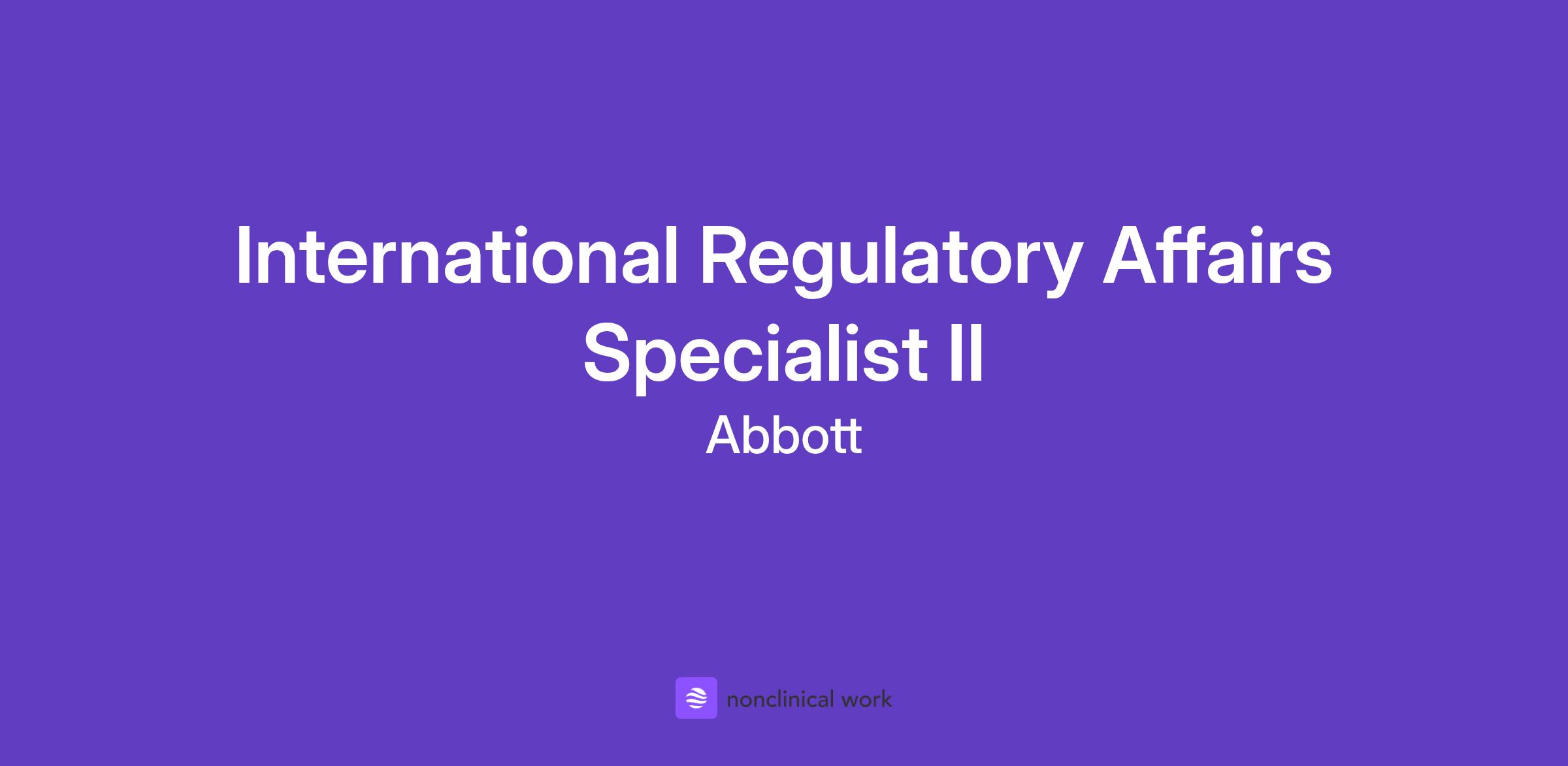 Abbott is a global healthcare leader that helps people live more fully at all stages of life. Our portfolio of life-changing technologies spans the spectrum of healthcare, with leading businesses and products in diagnostics, medical devices, nutritionals and branded generic medicines. Our 114,000 colleagues serve people in more than 160 countries. JOB DESCRIPTION: International Regulatory Affairs Specialist II About Abbott Abbott is a global healthcare leader, creating breakthrough science to improve people’s health. We’re always looking towards the future, anticipating changes in medical science and technology. Working at Abbott At Abbott, you can do work that matters, grow, and learn, care for yourself and family, be your true self and live a full life. You’ll also have access to: Career development with an international company where you can grow the career you dream of. Free medical coverage for employees* via the Health Investment Plan (HIP) PPO An excellent retirement savings plan with high employer contribution Tuition reimbursement, the Freedom 2 Save student debt program and FreeU education benefit - an affordable and convenient path to getting a bachelor’s degree. A company recognized as a great place to work in dozens of countries around the world and named one of the most admired companies in the world by Fortune. A company that is recognized as one of the best big companies to work for as well as a best place to work for diversity, working mothers, female executives, and scientists. The Opportunity In Abbott’s Electrophysiology (EP) business, we’re advancing the treatment of heart disease through breakthrough medical technologies in atrial fibrillation, allowing people to restore their health and get on with their lives. We are currently hiring an International Regulatory Affairs Specialist II to work on-site at our Plymouth, MN location. This new team member will perform specialized level work assignments and/or analyses, evaluation, preparation, and submission review of documentation for International geographies (primarily China) regulatory registration, ensuring products and procedures comply with regulations. Additionally, will support necessary regulatory activities required for product market entry. What You’ll Work On Assist in the preparation of Chinese regulatory applications to achieve departmental and organizational objectives. Review applicability of medical device regulations to ensure submission requirements are current, up-to-date and are entered into regulatory submission database and file systems. Ensure that information of such regulations and requirements, especially those that are new or modified, are distributed to appropriate personnel, if requested. Determine and communicate submission and approval requirements and timelines to project teams. Evaluate proposed preclinical, clinical, design and manufacturing changes for regulatory submission strategies. Track deliverables to meet timelines and follow up as needed to ensure timelines are met. Provide Regulatory impact assessment for changes to already licensed products. Act as a regulatory representative responsible for review and analysis of applicable regulatory guidelines. Work across functions to develop documents or required product information for successful regulatory submission. Assist with label development and review for compliance before release Support the product release process by reviewing and approving requests for product release. Exercise judgment in selecting innovative, practical methods to achieve problem resolution. Support all business segment initiatives as identified by divisional management and in support of Quality Management Systems (QMS), Environmental Management Systems (EMS), and other regulatory requirements. Required Qualifications Bachelors Degree (± 16 years), in science (biology, chemistry, microbiology, immunology, medical technology, pharmacy, pharmacology), math, engineering, or medical fields is preferred OR an equivalent combination of education and work experience Master's Degree (± 18 years), Preferred 2-3 years' experience in a regulated industry (e.g., medical products, nutritional). Regulatory area is preferred but may consider quality assurance, research and development/support, scientific affairs, operations, or related area. Experience with Regulatory history, guidelines, policies, standards, practices, requirements and precedents; Regulatory agency structure, processes and key personnel; Principles and requirements of applicable product laws; Submission/registration types and requirements; GxPs (GCPs, GLPs, GMPs); Principles and requirements of promotion, advertising and labeling; Domestic and international regulatory guidelines, policies and regulations; Ethical guidelines of the regulatory profession, clinical research and regulatory process. Note: This knowledge may be developed through tenure in this position. Communicate effectively verbally and in writing. Communicate with diverse audiences and personnel. Write and edit technical documents. Work with cross-functional teams. Work with people from various disciplines and cultures. Write and edit technical documents. Negotiation skills. Strong attention to detail. Manage projects. Create project plans and timelines. Think analytically and critically. Organize and track complex information. Exercise judgment within generally defined practices and policies in selecting methods and techniques for obtaining solutions. Has a sound knowledge of a variety of alternatives and their impact on the business Apply business and regulatory ethical standards. Preferred Qualifications Bachelor’s degree in science (biology, chemistry, microbiology, immunology, medical technology, pharmacy, pharmacology), math, engineering, or medical fields is preferred. Experience with medical device industry. Experience working with NMPA (CFDA) or other international regulatory parties. Chinese/Mandarin speaking ca