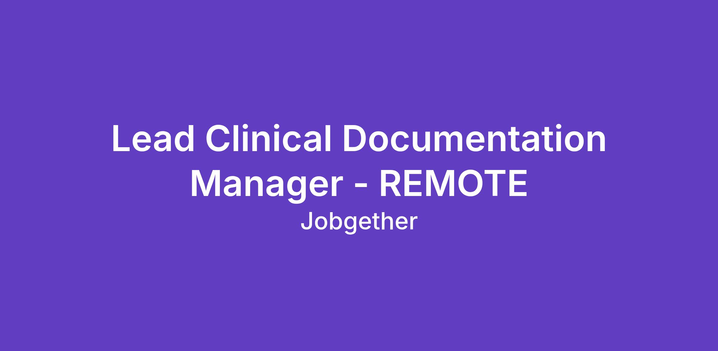 Lead Clinical Documentation Manager - REMOTE