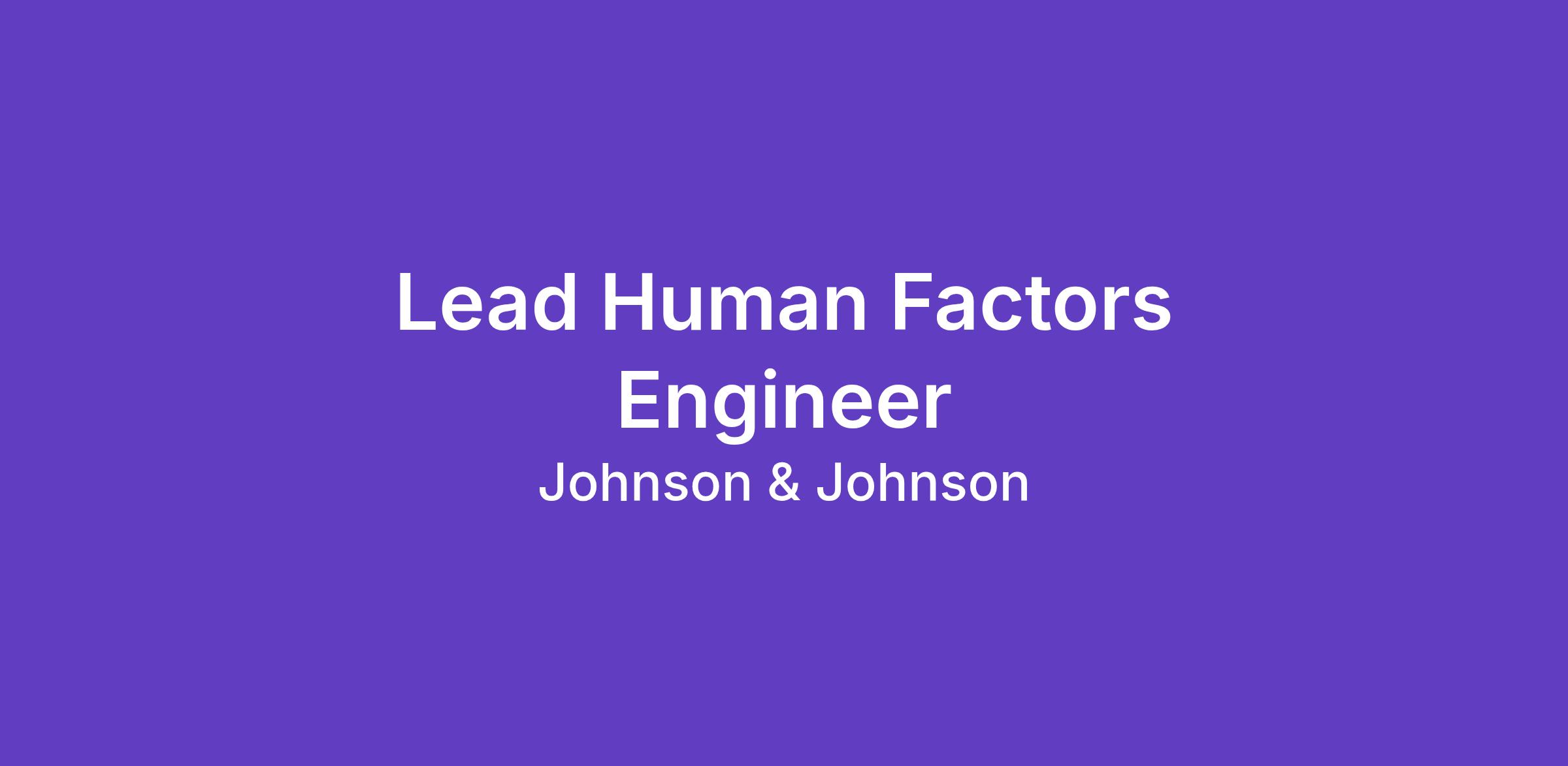Johnson & Johnson MedTech is recruiting for a Lead Human Factors Engineer, to join the OTTAVA™ team. This location for this position is Santa Clara, CA.