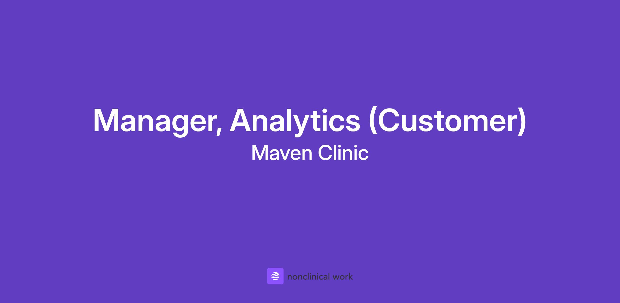 As Manager, Customer Analytics at Maven, you will: