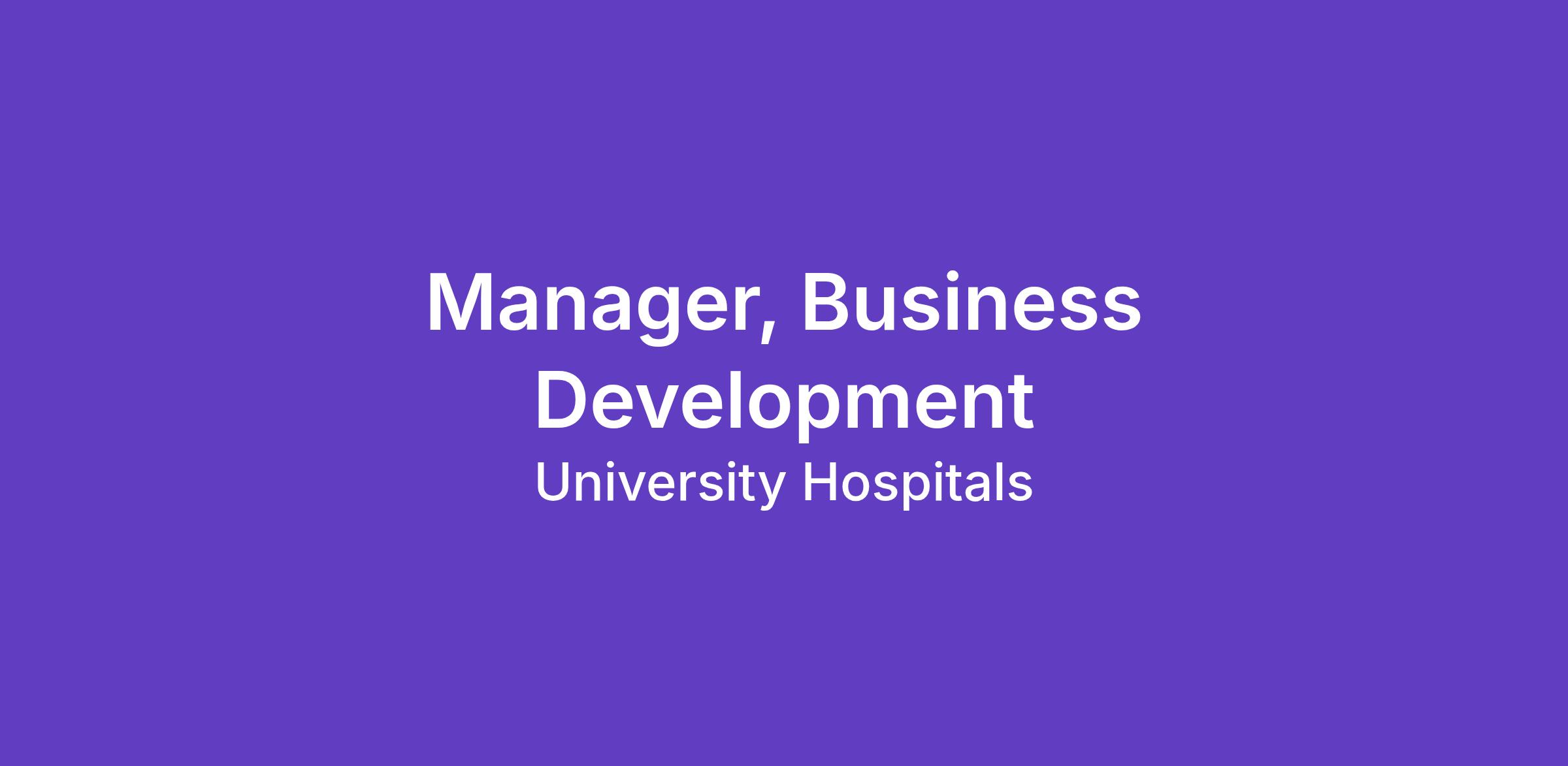 The Business Development Manager will oversee the strategic business development initiatives for the Medical Center(s) and greater market. The Manager is responsible for developing relationships and growing partnerships in the applicable communities, growing regional awareness of our medical centers and allied UH health care services, and positioning UH as the regional leader and partner for population health.