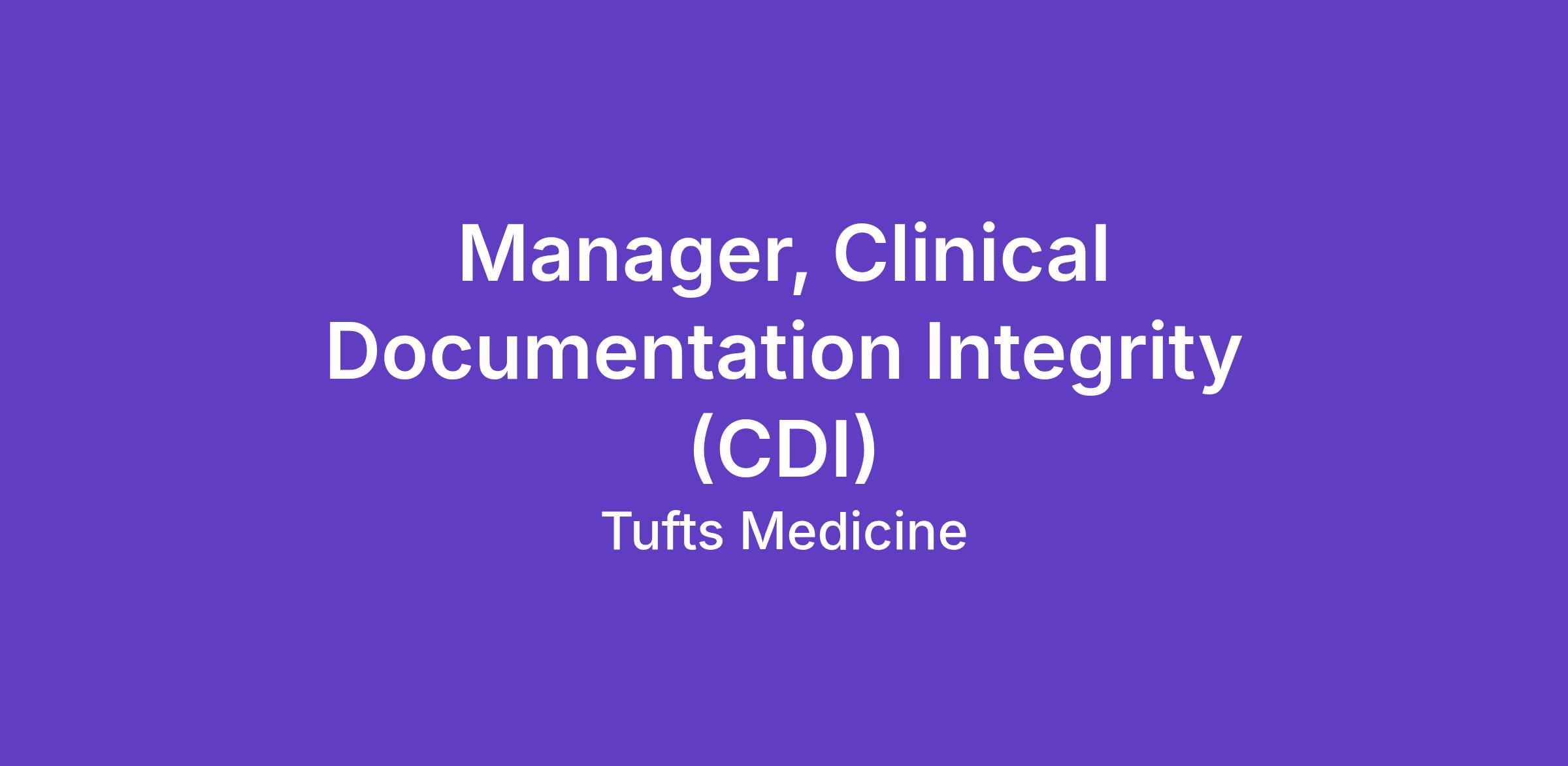 Title: Manager, Clinical Documentation Integrity