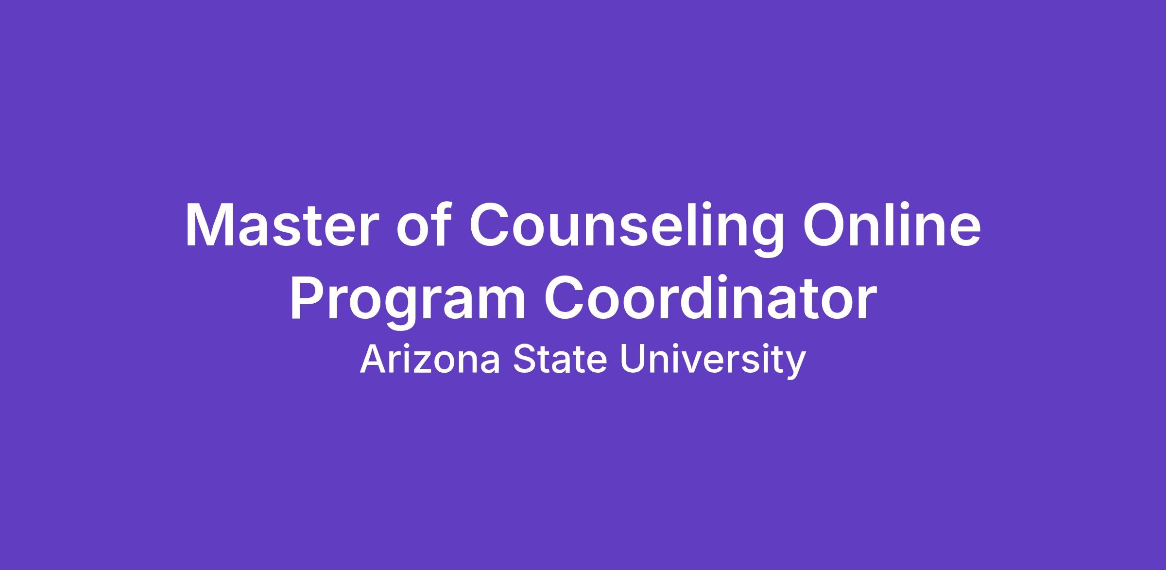 The College of Integrative Sciences and Arts (CISA) seeks a dynamic Master of Counseling Online Program Coordinator to join the School of Counseling and Counseling Psychology (SCCP) on the ASU Tempe campus. This position plays a central role in supporting the MC Online Program including admissions support, data gathering, course enrollments and scheduling, and student advising.