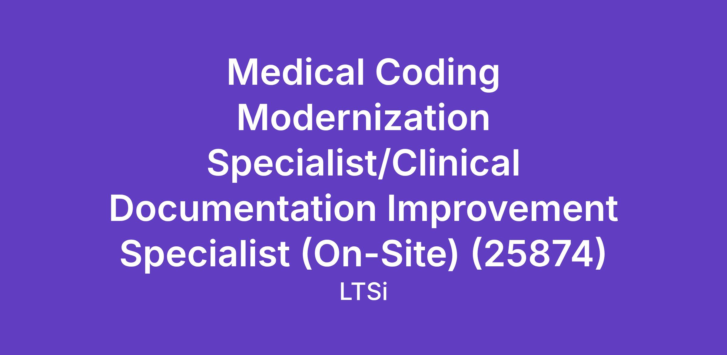 JOB TITLE: Medical Coding Modernization Specialist