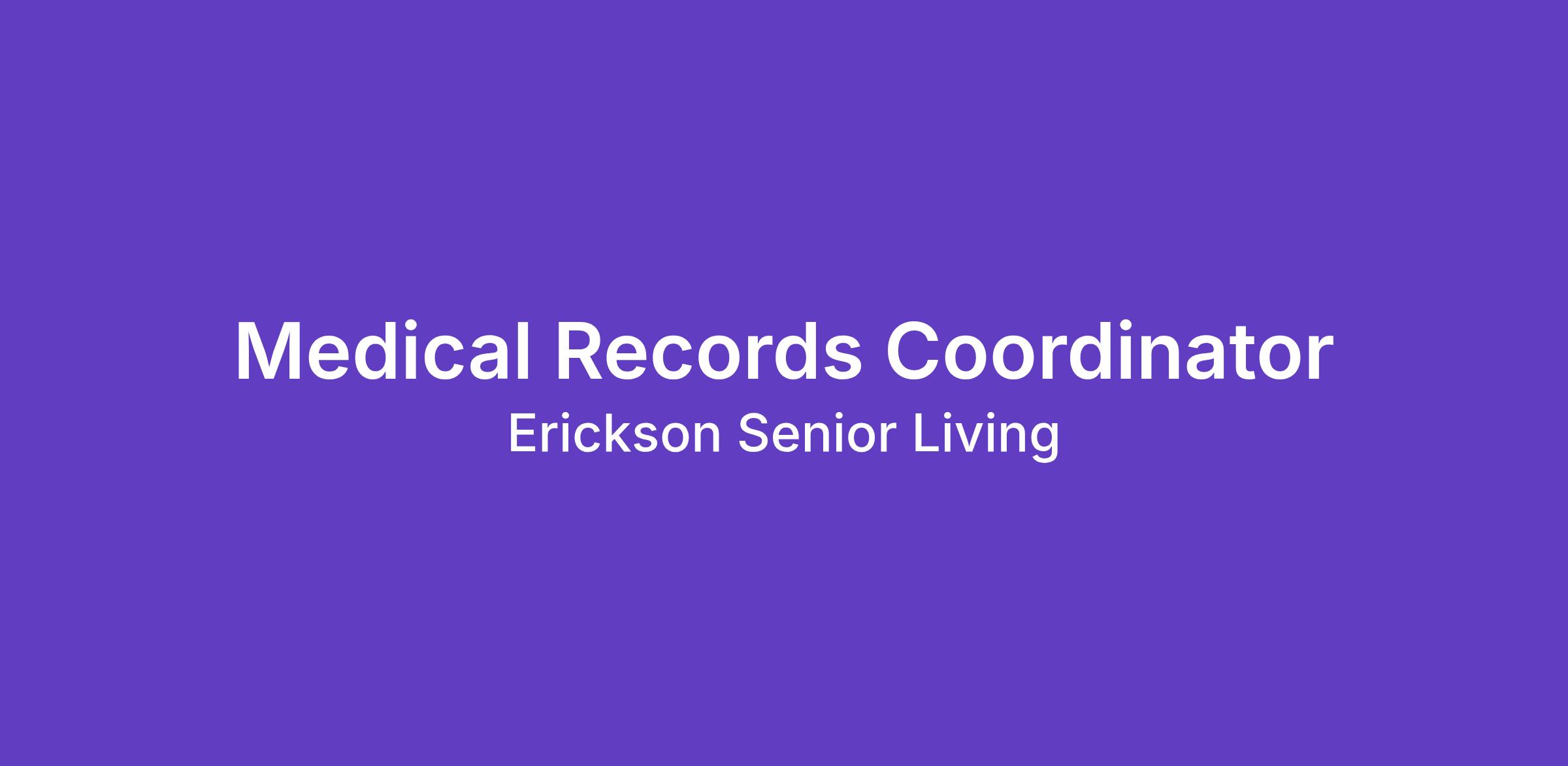 Ashby Ponds by Erickson Senior Living Join us as a Medical Records Coordinator for our onsite Medical Center. In this role, you will manage the patient medical records of all residents in our Continuing Care neighborhoods.