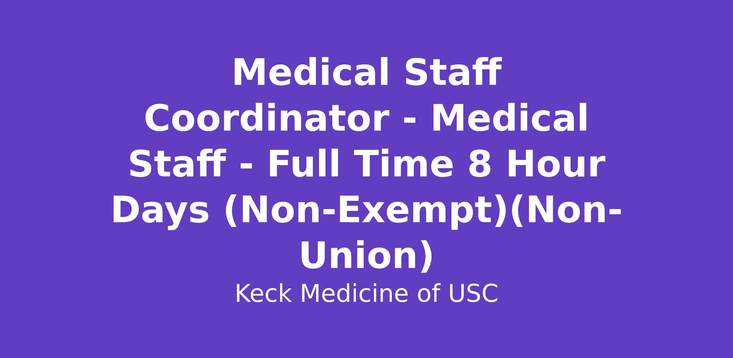 Medical Staff Coordinator - Medical Staff - Full Time 8 Hour Days (Non-Exempt)(Non-Union)