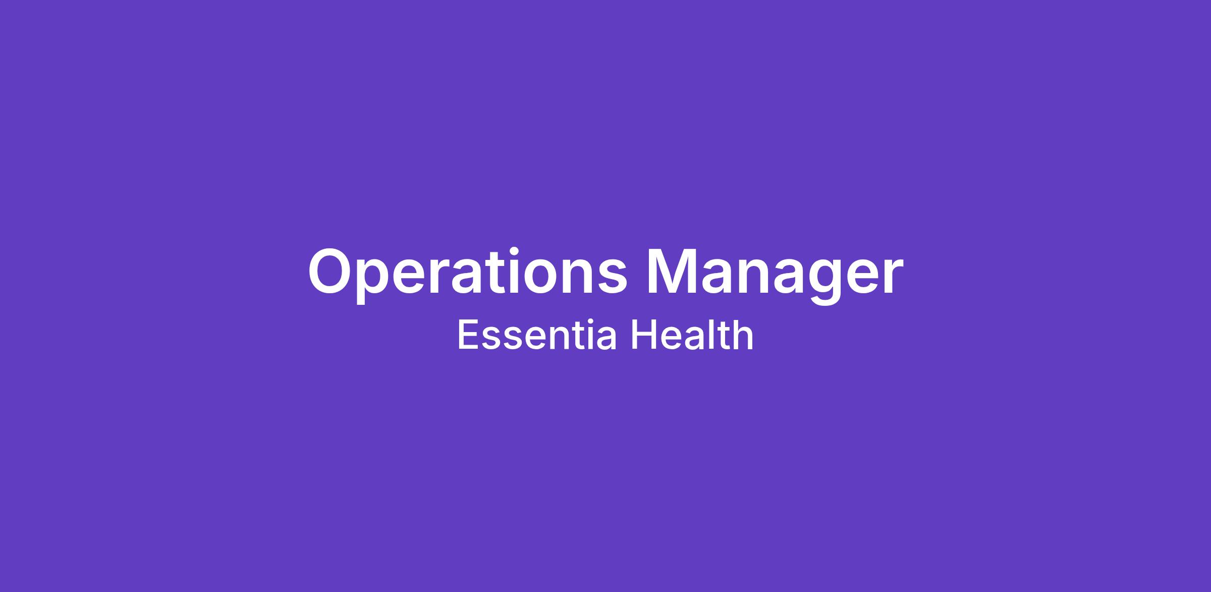 Building Location: Brainerd Clinic Department: 4201150 GEN INTERNAL MEDICINE - BMC Job Description: The Operations Manager leads assigned clinical areas to ensure optimal patient access, clinical quality and financial outcomes. Provides leadership to assigned colleagues, monitors engagement, recruitment and retention best practices, and initiatives. The Manager is responsible for achieving financial targets related to staff productivity, physician and advanced practice productivity, and ensures assigned areas are staffed according to volumes. Implements strategic priorities and executes assigned work with direction and guidance from leadership. Education Qualifications: Key Responsibilities: Manages fill rates, physician and advanced practice provider schedules and templates daily Manages in reach or out reach as relevant to assigned practices Implements actions to improve employee engagement Ensures standard work is implemented to achieve quality metrics Provides coaching, feedback and ensures development conversations are completed for all members of the team Serves as escalation point for patient access to care Participates in PDSA's and other improvement activities Provides input into long-range financial planning, program development and capital planning process Delegates work to assigned supervisors if appropriate Educational Requirements: Bachelorβs degree in business administration, healthcare leadership or clinical healthcare field OR Associateβs degree in nursing and ability to obtain bachelorβs degree within 3 years from date of hire Required Qualifications: 3 years of healthcare experience, preferably in a clinical setting or completion of administrative fellowship through Essentia Health fellowship program Licensure/Certification Qualifications: FTE: 1 Possible Remote/Hybrid Option: Shift Rotation: Day Rotation (United States of America) Shift Start Time: Shift End Time: Weekends: Holidays: No Call Obligation: No Union: Union Posting Deadline: Compensation Range: $83,428.80 - $125,153.60 Employee Benefits at Essentia Health: At Essentia Health, weβre committed to supporting your well-being, growth, and work-life balance. Our comprehensive benefits include medical, dental, vision, life, and disability insurance, along with supplemental options to fit your needs. We offer a 401(k) plan with employer contributions to help you plan for the future, and we invest in your professional development through training, tuition reimbursement, and educational programs. To help you thrive both at work and at home, we provide flexible scheduling, generous time off, and wellness resources focused on your physical, mental, and emotional health. Please note that benefit eligibility may vary. For full details, refer to your benefit summary or contact our HR Service Center at (218) 576-0000. To search for more jobs, please CLICK HERE. Find more than a job. Find more in yourself. Find your calling. Essentia Health seeks employees who embrace our commitment to patient- and family-centered care in communities both large and small. We're looking for people who are committed to making patients and their families feel known and understood. People who understand what it means to be Here with you. People who are willing to use their strengths to help others. Our Values Quality | Hospitality | Respect | Joy | Justice | Stewardship | Teamwork Essentia Health is an Equal Opportunity/Affirmative Action Employer. Essentia Health does not discriminate in employment because of age, color, creed, culture, disability (physical or mental), ethnicity, familial status, gender identity or expression, genetic information, language, local Human Rights Commission activity, national origin, military service, race, religion, sex, sexual orientation, socioeconomic status, or public assistance status. Job offers are contingent upon successful completion of post-offer screenings. Screenings includes verification of your legal right to work in the United States, a health screening and immunization review, verification of applicable licensure, certifications, education, and experience, and background checks including criminal, urine drug screen and MVR where required.