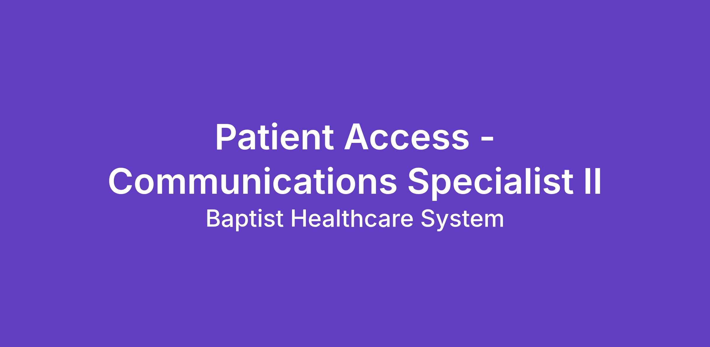 Job Title: Patient Access – Communications Specialist II