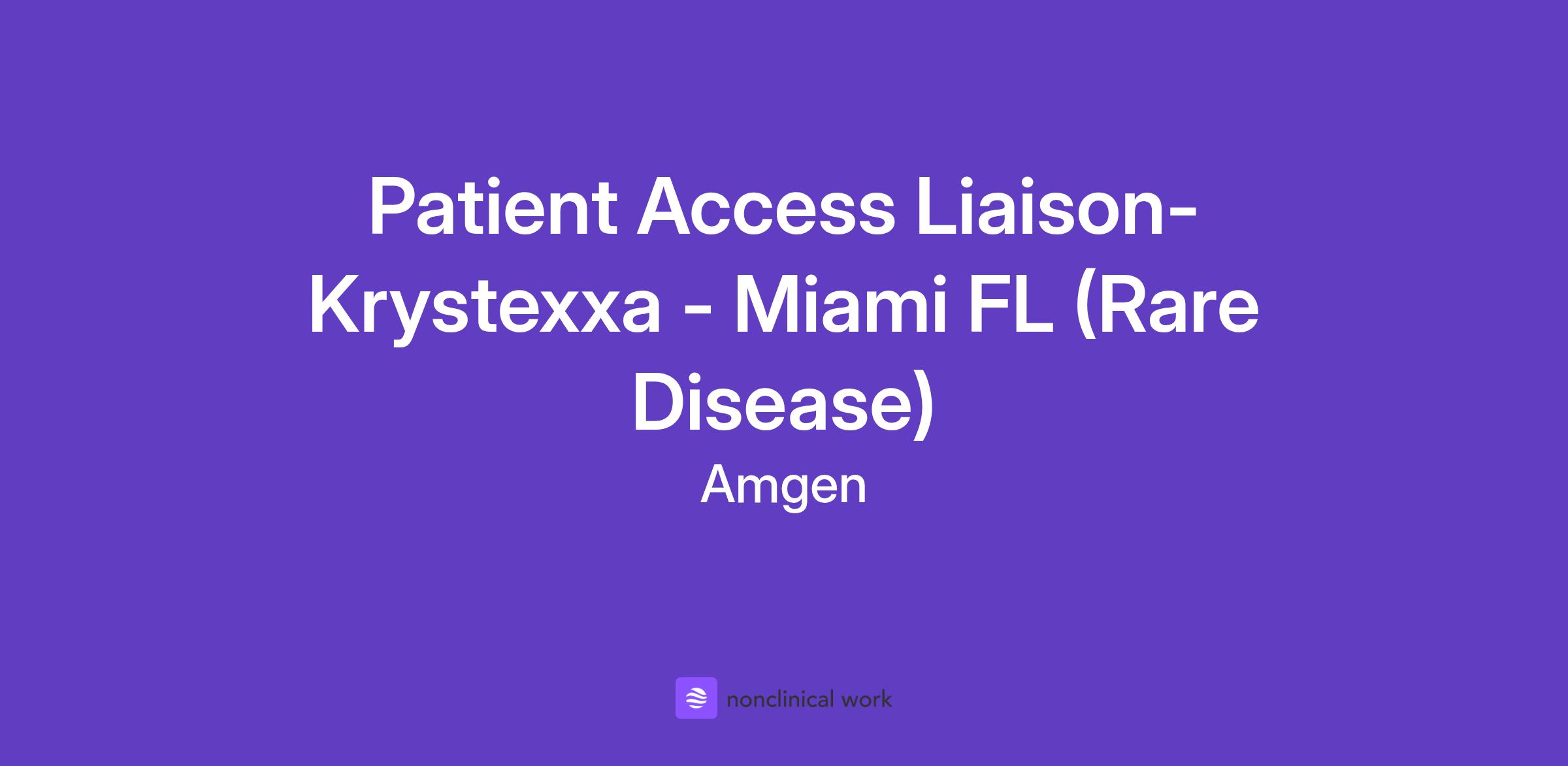 Career Category Corporate Services Job Description Join Amgen’s Mission of Serving Patients At Amgen, if you feel like you’re part of something bigger, it’s because you are. Our shared mission—to serve patients living with serious illnesses—drives all that we do. Since 1980, we’ve helped pioneer the world of biotech in our fight against the world’s toughest diseases. With our focus on four therapeutic areas –Oncology, Inflammation, General Medicine, and Rare Disease– we reach millions of patients each year. As a member of the Amgen team, you’ll help make a lasting impact on the lives of patients as we research, manufacture, and deliver innovative medicines to help people live longer, fuller happier lives. Our award-winning culture is collaborative, innovative, and science based. If you have a passion for challenges and the opportunities that lay within them, you’ll thrive as part of the Amgen team. Join us and transform the lives of patients while transforming your career. HOW MIGHT YOU DEFY IMAGINATION? If you feel like you’re part of something bigger, it’s because you are. At Amgen, our shared mission—to serve patients—drives all that we do. It is key to our becoming one of the world’s leading biotechnology companies. We are global collaborators who achieve together—researching, manufacturing, and delivering ever-better products that reach over 10 million patients worldwide. It’s time for a career you can be proud of. Patient Access Liaison - KRYSTEXXA - Rare Disease Live What you will do Let’s do this. Let’s change the world. In this vital role you will provide logistical, non-medical educational assistance to patients and caregivers as well as office and site of care staff, including physicians, nurses, office managers and executives. Strong knowledge and demonstrated history of access and reimbursement for buy and bill/infused pharmaceutical products is required. The PAL works in highly visible, strong team environment to provide exceptional customer service on all levels. The PAL will work with the patient, the physician and the Site of Care to educate on next steps required to gain access to therapy. The PAL will also work to maintain relationships with patients and families, and by extension physicians and their staff and cross-functional partners to support ongoing compliance with therapy. The PAL will work with numerous internal teams, including Market Access, Medical Affairs, Advocacy, Marketing, and Site of Care to facilitate and improve patient access to insurance, medications, financial support, resources and more. Secure written or electronic patient HIPAA for patients in the assigned geography Develop relationships with patients and caregivers by engaging via phone, text, email, virtual or in person connections Assess individual needs of the patient and develop an appropriate education and resource plan of action, considering the patient’s family and team of healthcare providers to empower the patient to become their own advocate Educate the patient on KRYSTEXXA coverage based on their benefits and the steps needed to gain prior authorization to ensure understanding of the process for medication access Provide information on co-pay assistance programs, national foundations, and free drug programs by sharing information to patients as appropriate and needed Provide proactive education to prescribers and sites of care upon patient enrollment on coverage for Horizon rare disease therapies, common prior authorization requirements, and coding and billings requirements Provide access and reimbursement education based on the enrolled patient’s KRYSTEXXA benefits to physician offices and sites of care Educate the physician office and/or SOC on KRYSTEXXA coverage based on the patient’s benefits and the steps needed to gain prior authorization to ensure understanding of the process for medication access Investigate access challenges pre and post-infusion to include support for denied claims and claim reviews Partner with Safety and PV and report AE’s and product complaints through medical information. Work closely with the Horizon cross functional team including Case Managers, the Site of Care team, market access, matrix partners and external vendors Adhere to professional standards compliance guidance, policies and procedures, federal, state, and local requirements Win What we expect of you We are all different, yet we all use our unique contributions to serve patients. Basic Qualifications: Doctorate degree and 2 years of patient services, and/or access and reimbursement, experience OR Master's degree and 4 years of patient services, and/or access and reimbursement, experience OR Bachelor's degree and 6 years of patient services, and/or access and reimbursement, experience Preferred Qualifications: Scientific background and ability to learn product and disease information. Nursing or other clinical background a plus Access and reimbursement for buy and bill products Orphan or Rare disease experience. Familiarity with HIPAA guidelines and FDA requirements. Familiarity with and Adherence to internal and OIG Compliance guidelines a must Ability to handle difficult patient cases and resolve hurdles. Ability to work in team environment and manage communication with case Liaisons and sales reps. Ability to respond immediately when necessary (within 24 hours) to prevent lapses in treatment. Strong analytical skills and ability to report on meaningful activity in the region. Proficient in Microsoft Office. Professional, proactive demeanor. Strong interpersonal skills and strategic mindset. Excellent written and verbal communication skills. Potential for up to 50% travel, including some overnight and weekend commitments. Thrive What you can expect of us As we work to develop treatments that take care of others, we also work to care for our teammates’ professional and personal growth and well-being. The expected annual salary range for this