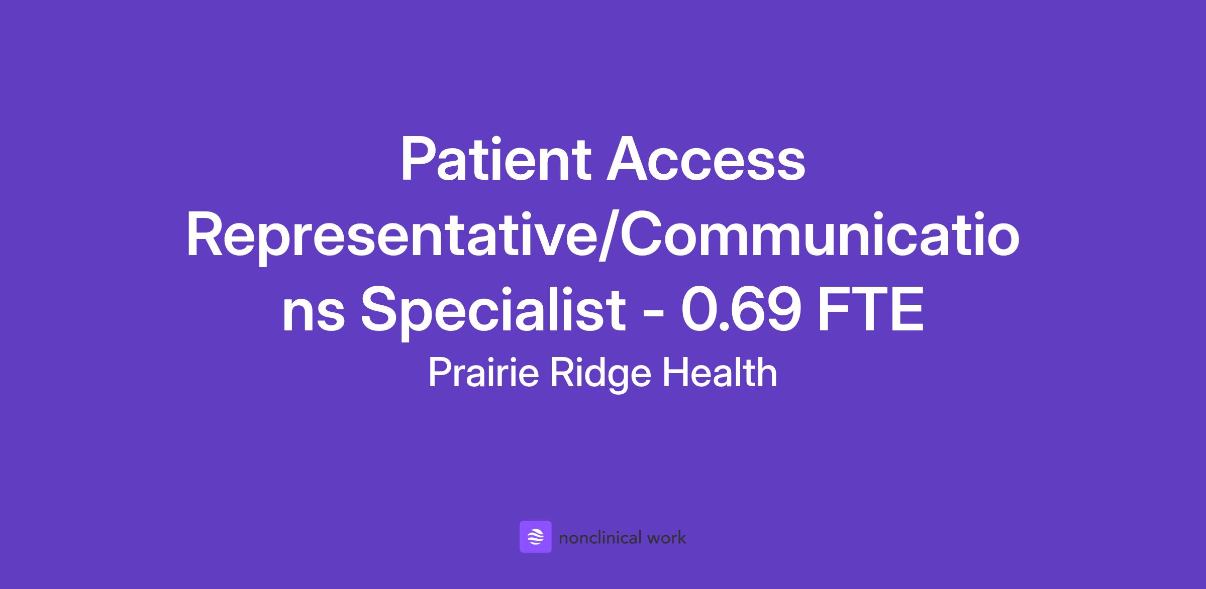 Prairie Ridge Health is looking for a team member to join our Registration/Communications Department in the role of Patient Access Representative/Communications Specialist. This position is a 0.69 FTE (28 hours per week). This position will work various night, pm and weekend shifts. Both roles are one of the first points of contact for PRH and will be expected to demonstrate a high level of customer service.....