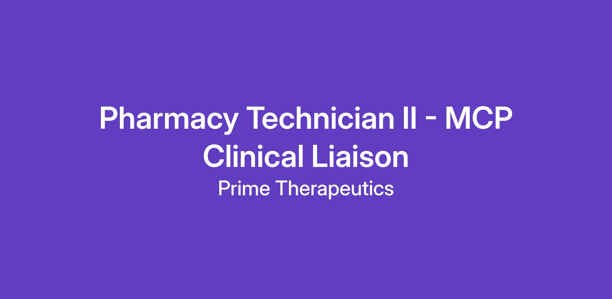 Pharmacy Technician II - MCP Clinical Liaison - Remote