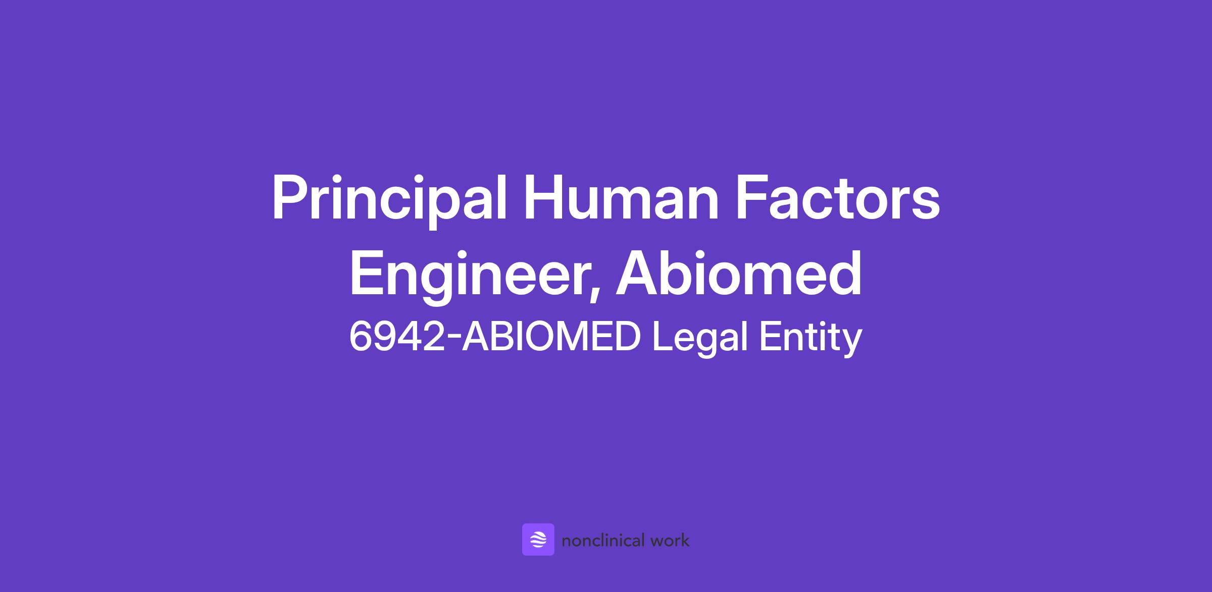 Johnson & Johnson is hiring for a Principal Human Factors Engineer – Abiomed to join our team located in Danvers, Massachusetts.