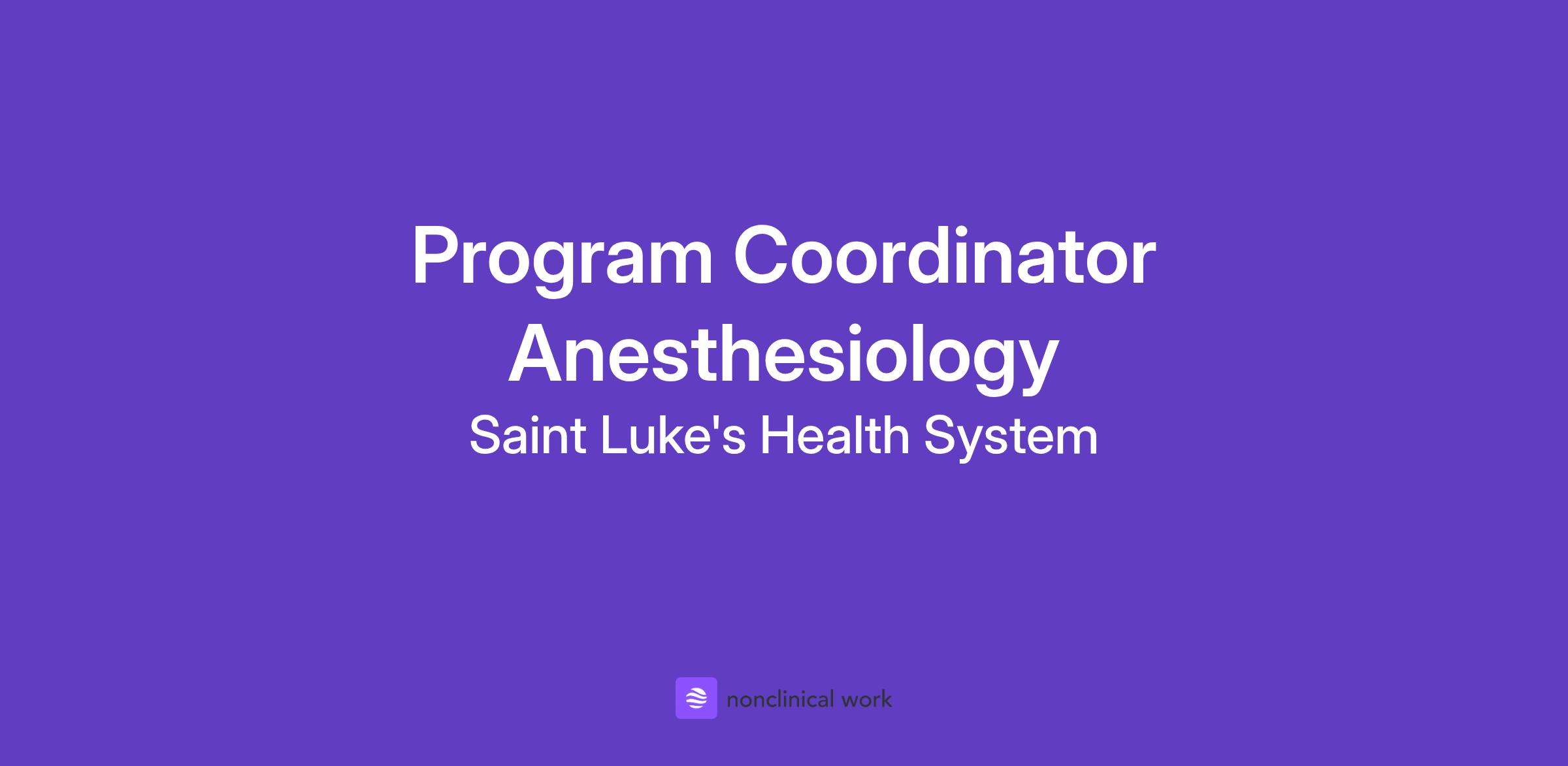 Job Descriptionβ The Program Coordinator Anesthesiology assists Anesthesiology leadership, providers at all Anesthesia coverage facilities in daily operations as well as growth for the Anesthesiology programs.
