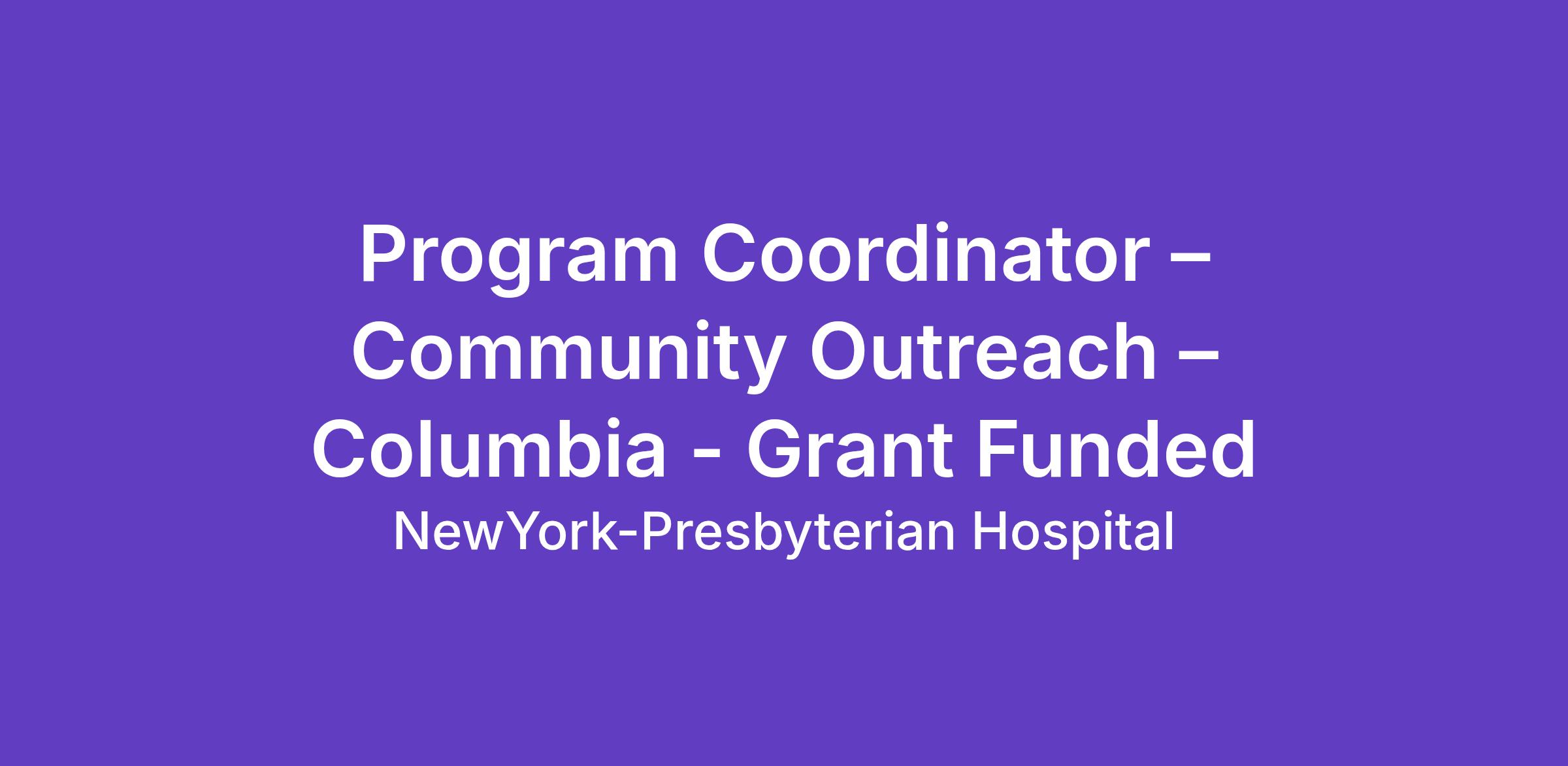 Program Coordinator – Community Outreach – Columbia - Grant Funded