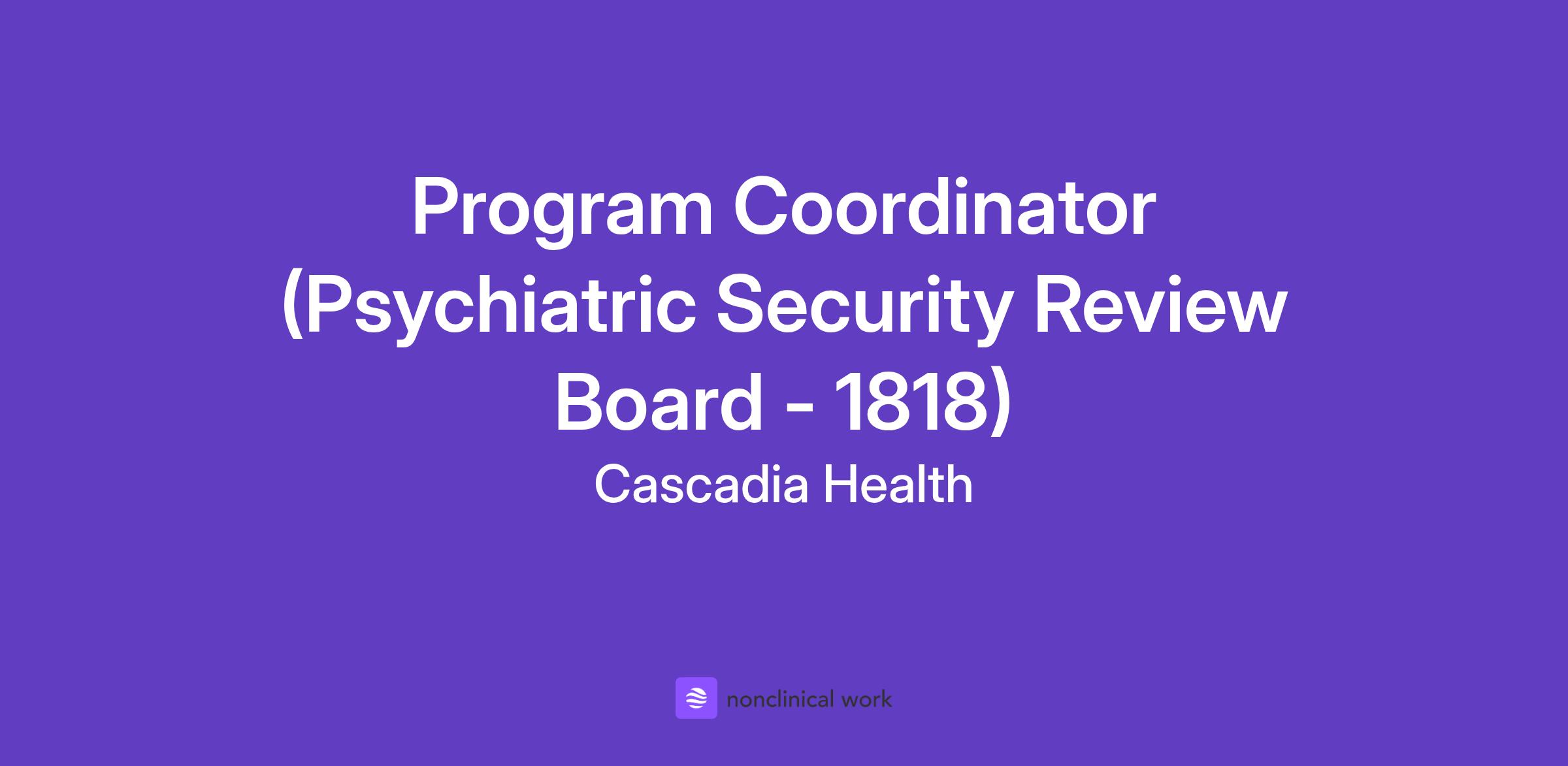 Program Supervisor I (Psychiatric Security Review Board - 1818) Job Overview