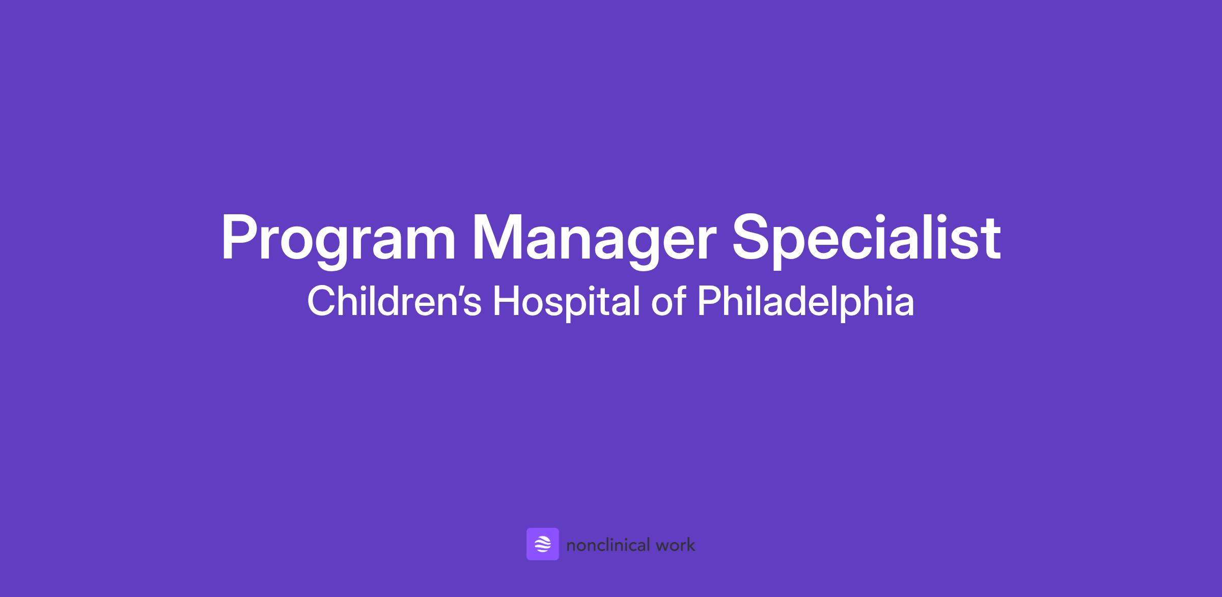 Seeking Breakthrough Makers Children’s Hospital of Philadelphia (CHOP) offers countless ways to change lives. Our diverse community of more than 20,000 Breakthrough Makers will inspire you to pursue passions, develop expertise, and drive innovation. At CHOP, your experience is valued; your voice is heard; and your contributions make a difference for patients and families. Join us as we build on our promise to advance pediatric care—and your career. CHOP does not discriminate on the basis of race, color, sex, national origin, religion, or any other legally protected categories in any employment, training, or vendor decisions or programs. CHOP recognizes the critical importance of a workforce rich in varied backgrounds and experiences and engages in ongoing efforts to achieve that through equally varied and non-discriminatory means. A Brief Overview This role is responsible for the advanced coordination, administration, and operational functions of program(s). What you will do