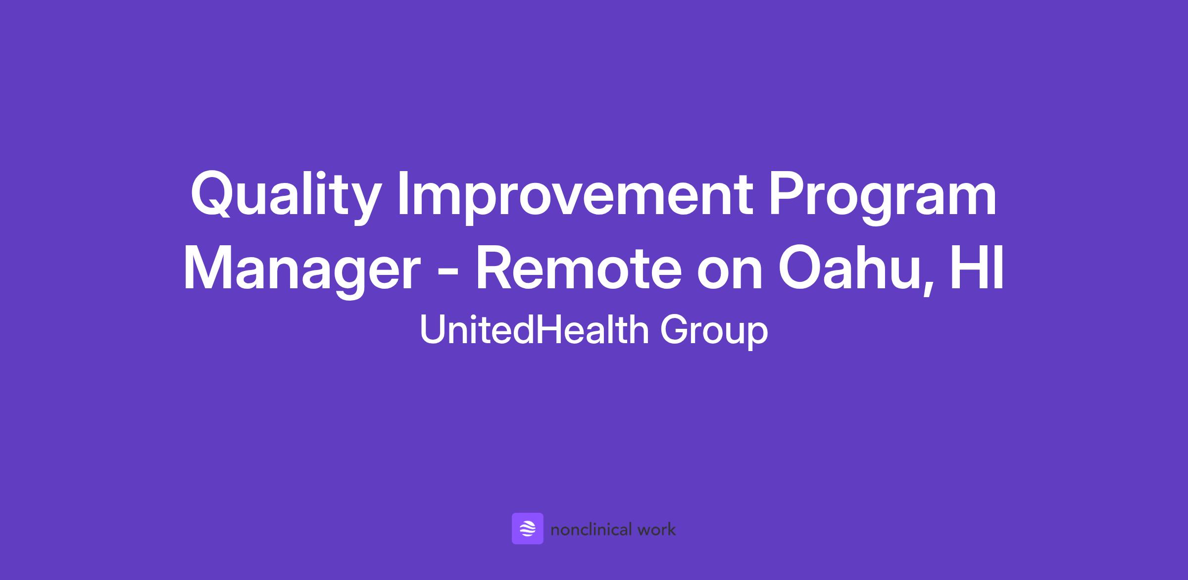 This is a work from home / telecommute position within Oahu. Travel will be required to the Honolulu office for meetings, offsite Quality Committee meetings, and State sponsored meetings up to 10 percent of the time.