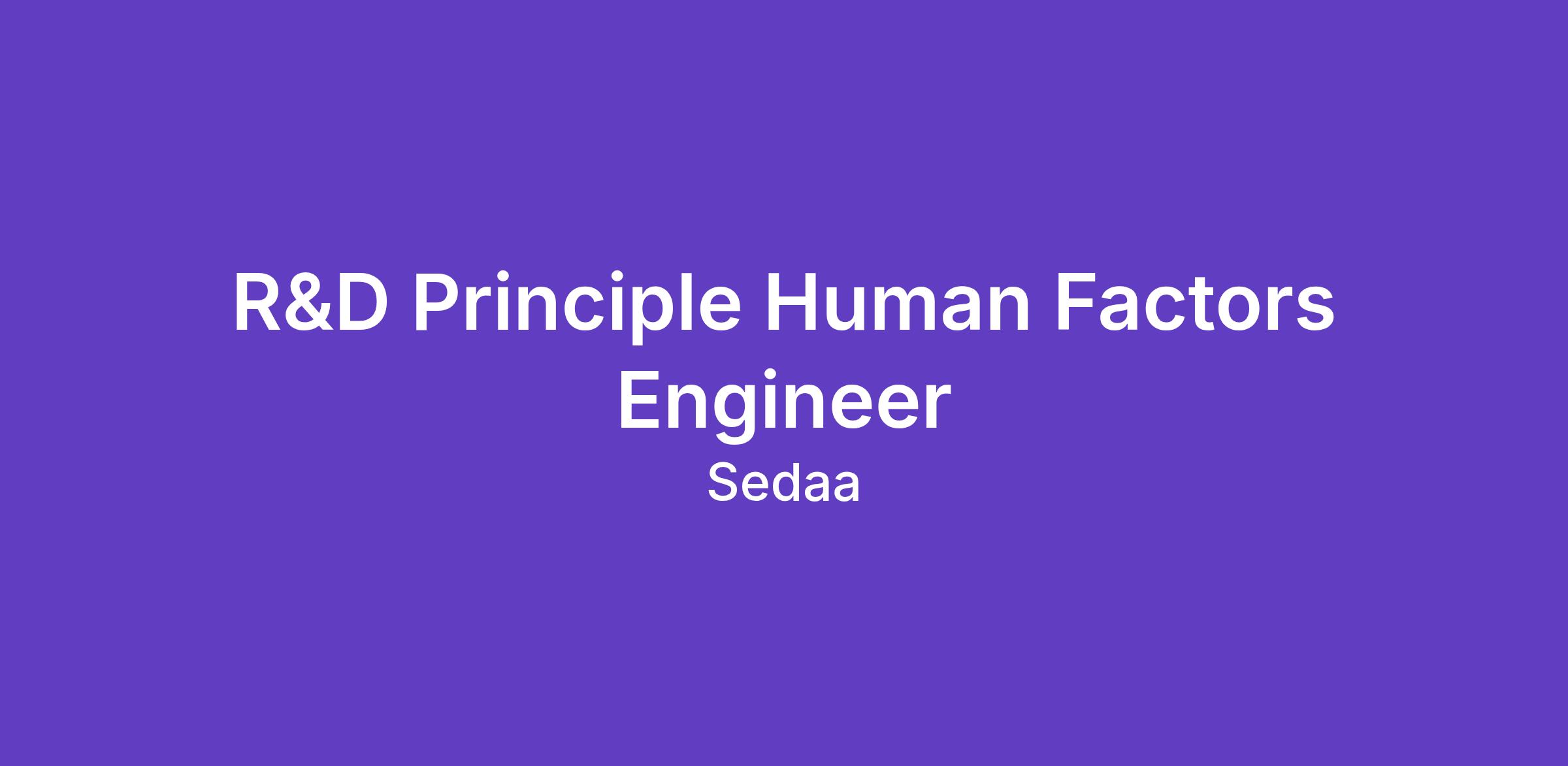 Requisition Title: R&D Principle Human Factors Engineer