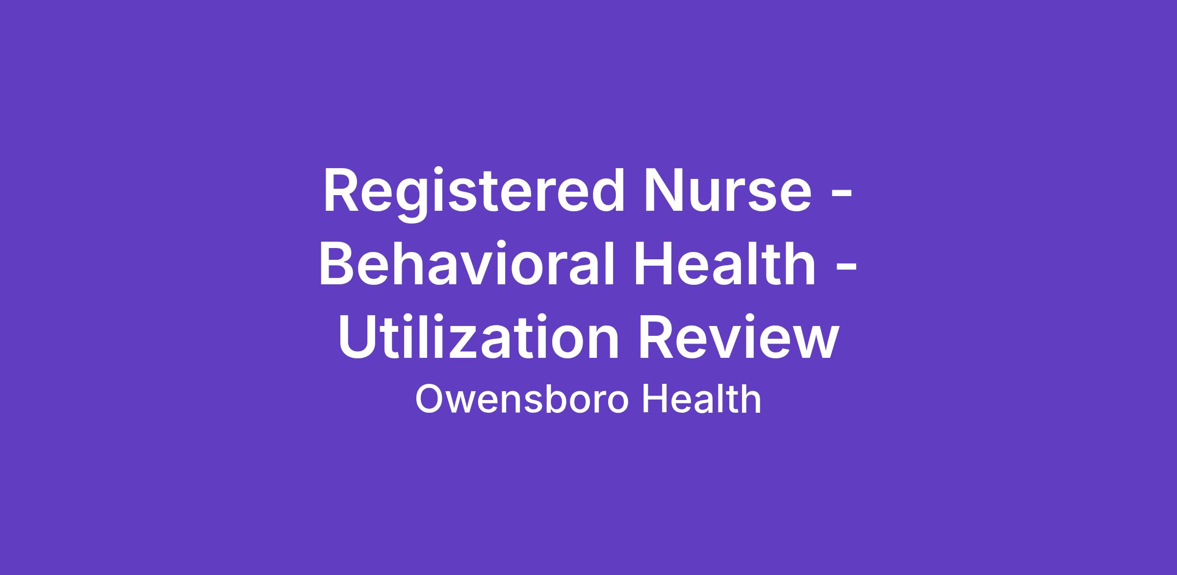Entity: Owensboro Health Regional Hospital | Department: Behavioral Health Utilization Review | Work Hours: 0700-1930 | Weekend Requirements: One | 0.6 FTE