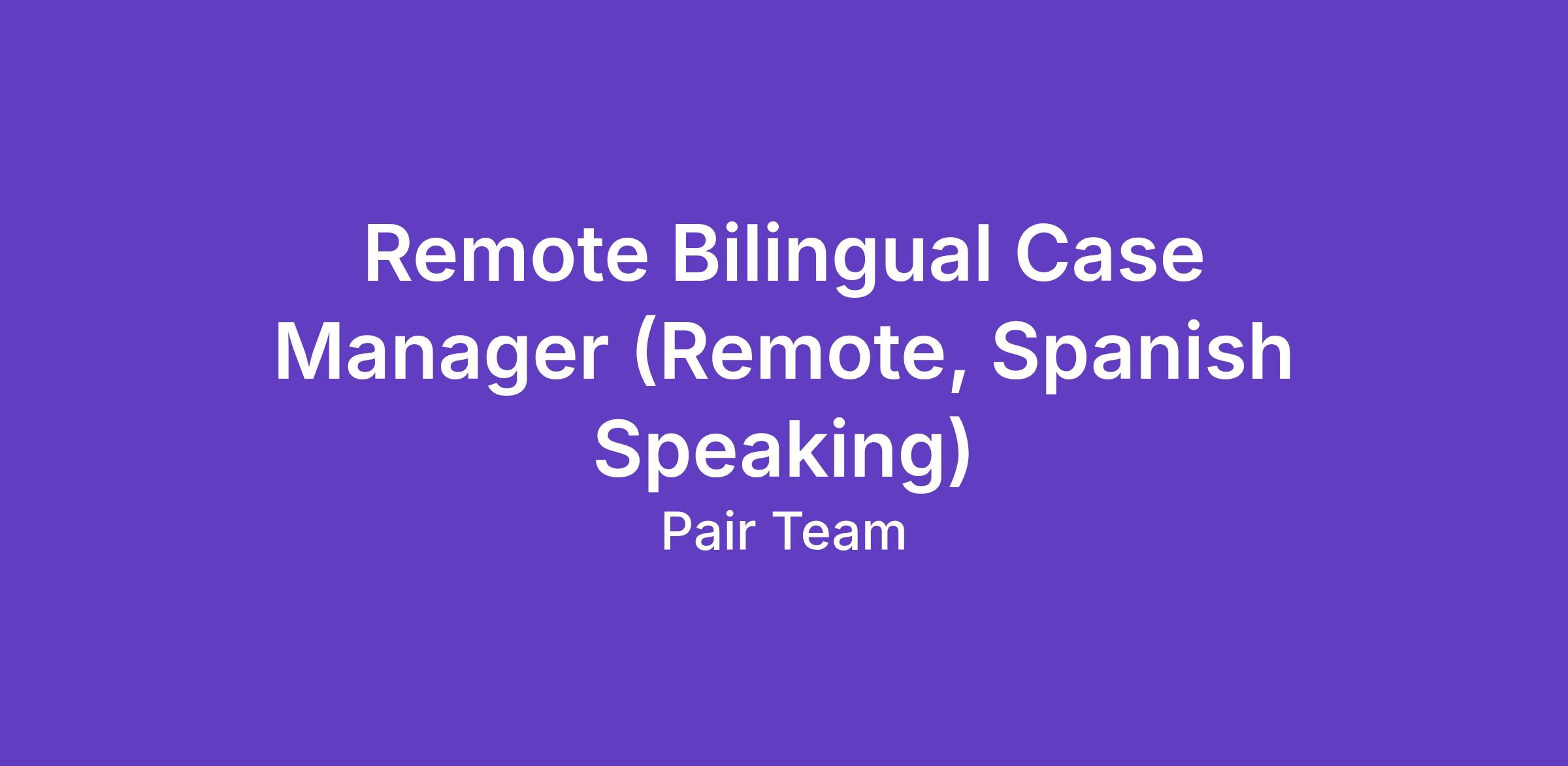 Remote Bilingual Case Manager (Remote, Spanish Speaking)