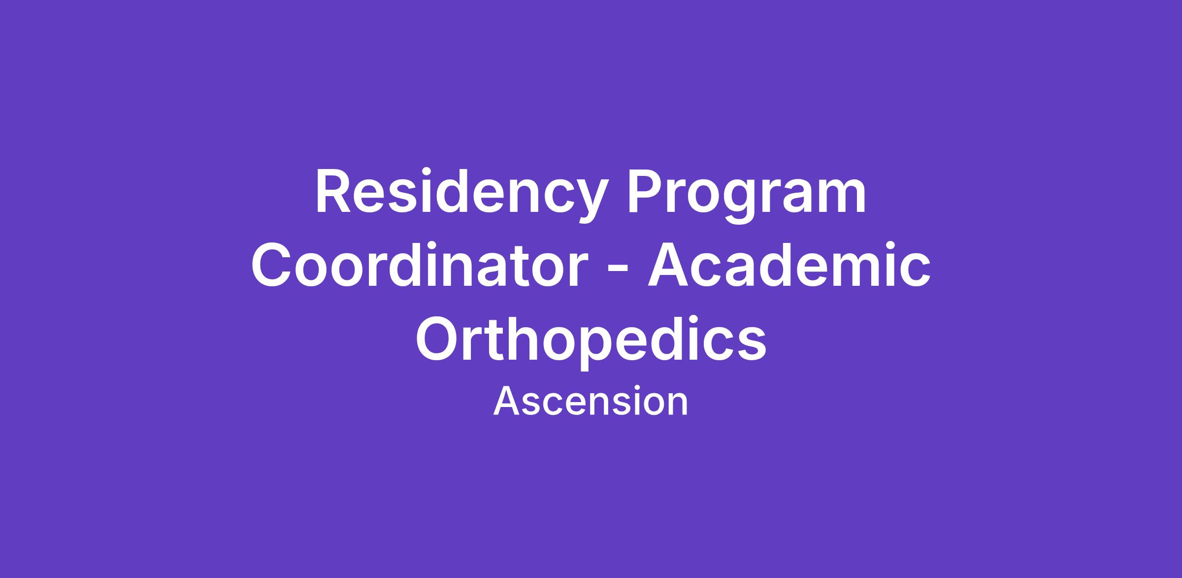 Responsibilities Organize and coordinate activities and flow of work for the physician residency program.