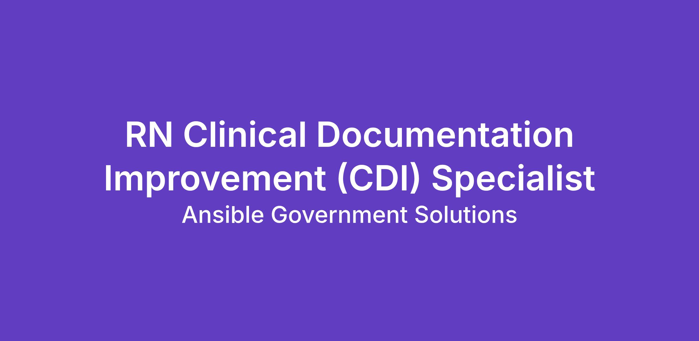 Ansible Government Solutions, LLC (Ansible) is seeking multiple Registered Nurse Clinical Documentation Improvement (CDI) Specialists to work with us in support of the Orlando VA Medical Center located at 13800 Veterans Way Orlando, FL 32827. The schedule is typically Monday-Friday, 7:30am-4pm. If you accept employment with Ansible, you must also acknowledge that any assigned schedule is subject to change at the direction of either Ansible or its customers.