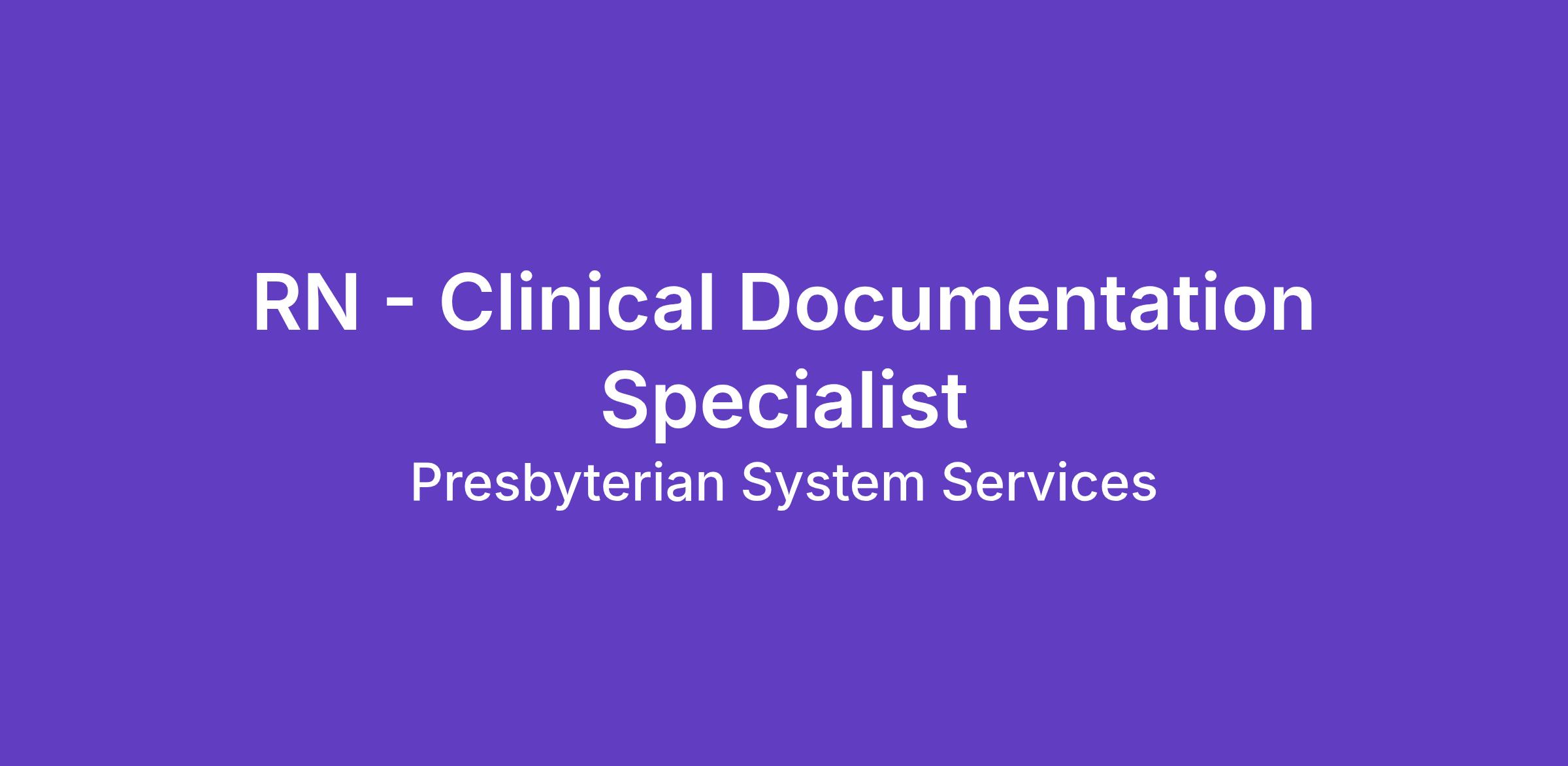 Presbyterian is seeking an RN - Clinical Documentation Specialist. This position is expected to assist medical staff providers with documentation in the medical record. Will be responsible to review physician documentation daily; keep track of patient diagnosis and procedures to reflect the level of service provided. Will work independently and must be able to develop, schedule and prioritize the workload to ensure all work is completed. Must be flexible to assist with coverage issues and a team player in consultation with other reviewers and HIM coders. Excellent communication skills are essential for daily interaction and collaboration with physicians and staff to ensure that clinical information in the medical record is present and accurate to support that the appropriate clinical severity is captured for the level of service rendered. This position may encounter resistance due to the perception that information is already adequately documented in the medical record. It requires experience and confidence to address all types of clinical documentation issues and regulatory requirements. The individual must be assertive and tactful to obtain medical staff cooperation