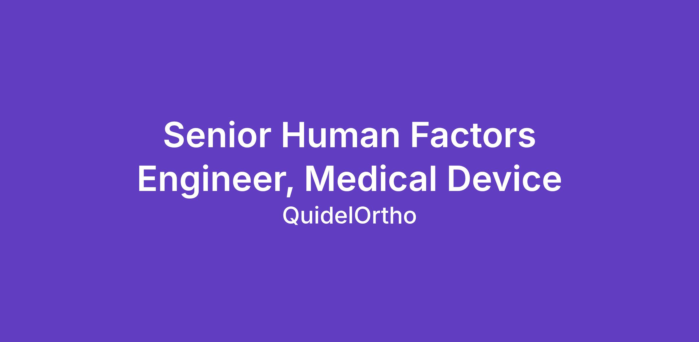 At QuidelOrtho, we’re advancing the power of diagnostics for a healthier future for all. Join our mission as our next Senior Human Factors Engineer to R&D new product platform and existing project workloads. This is an individual contributor role with opportunities for evaluating use-related risk, designing usability studies, performing usability assessments to inform design, providing inputs to product design, documenting the outcome of usability studies, and contributing to the human factors validation of medical diagnostic devices and products.
