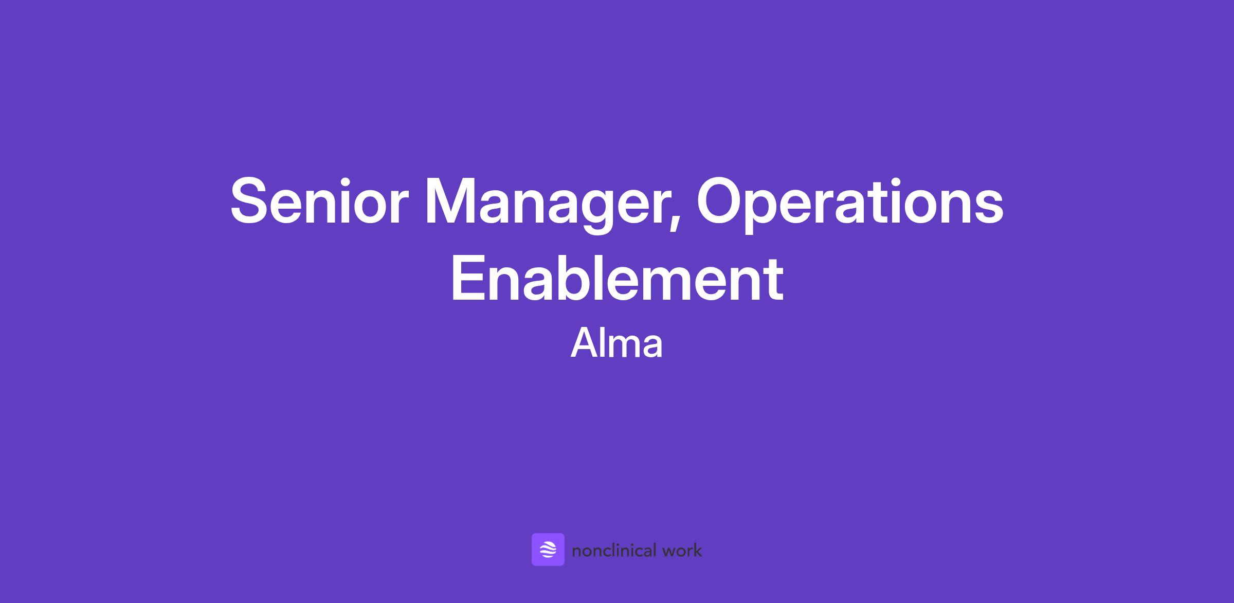 Operations team as the Sr. Manager, Operations Enablement. This role sits at the