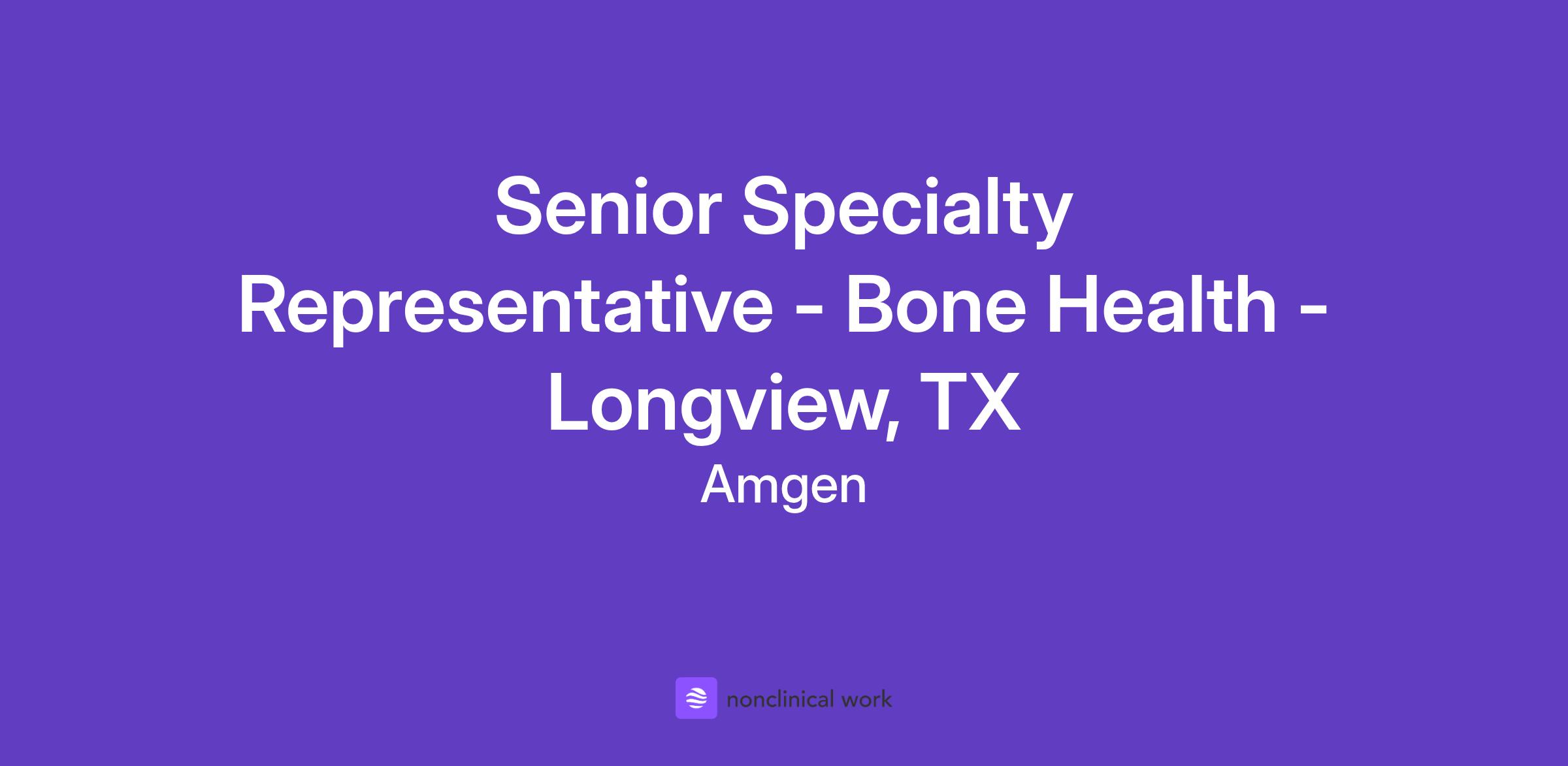Career Category Sales Job Description Territory Covers: Longview, Tyler, Texarkana, Lufkin TX Relocation is not offered for this role. Join Amgen’s Mission of Serving Patients At Amgen, if you feel like you’re part of something bigger, it’s because you are. Our shared mission—to serve patients living with serious illnesses—drives all that we do. Since 1980, we’ve helped pioneer the world of biotech in our fight against the world’s toughest diseases. With our focus on four therapeutic areas –Oncology, Inflammation, General Medicine, and Rare Disease– we reach millions of patients each year. As a member of the Amgen team, you’ll help make a lasting impact on the lives of patients as we research, manufacture, and deliver innovative medicines to help people live longer, fuller happier lives. Our award-winning culture is collaborative, innovative, and science based. If you have a passion for challenges and the opportunities that lay within them, you’ll thrive as part of the Amgen team. Join us and transform the lives of patients while transforming your career. SR. SPECIALTY REP What you will do Let’s do this. Let’s change the world. In this vital role you will be the connection to our customers by providing clinical knowledge of our products to medical professionals and helping them navigate the complex payer environment. We are actively searching for a Senior Specialty Representative to deliver on our commitment to serve patients. The Senior Specialty Representative acts as the primary customer contact and is responsible for implementing marketing strategy and promoting Amgen products as led by the District Manager. Responsibilities include: · Provide current and comprehensive knowledge of Amgen's products and effectively communicate the clinical benefits to medical professionals to drive appropriate utilization of the products · Perform as a sales leader to achieve territory sales by delivering branded sales messages, conducting planned programs, scheduling and following-up with medical educational programs, and achieving or exceeding sales targets through both in-person and virtual engagement · Develop relationships to service and manage accounts which may include: customizing discussions and customer interactions based on understanding of customer needs, ensuring product access, resolving/triage reimbursement issues, and maintaining product contracts · Provide feedback on marketing strategy, analyze business effectiveness of sales activities and territory analysis, and develop territory plans with the District Manager · Partner with other colleagues to share best practices and seek to learn and grow as a Senior Specialty Representative · Demonstrate passion for our products and sustain that passion through the entire sales cycle while always building our brand and never losing sight of how we serve patients · Uphold Amgen Values: Be Science-Based; Compete Intensely and Win; Create Value for Patients, Staff, and Stockholders; Be Ethical; Trust and Respect Each Other; Ensure Quality; Work in Teams; Collaborate, Communicate, and Be Accountable What we expect of you We are all different, yet we all use our unique contributions to serve patients. The sales professional we seek is a motivated individual with these qualifications. Basic Qualifications: Bachelor’s degree and 3 years of sales experience and/or clinical experience in healthcare / scientific field that is not sales related OR Associate degree and 6 years of sales experience and/or clinical experience in healthcare / scientific field that is not sales related OR High school diploma / GED and 8 years of sales experience and/or clinical experience in healthcare / scientific field that is not sales related Preferred Qualifications: · More than 3 years’ Sales, marketing and/or clinical experience within pharmaceutical, biotech, diagnostics, healthcare insurance, pharmacy services, healthcare medical device or medical supply industries · Product or hospital sales experience in the areas of oncology, cardiology, inflammation, nephrology, dermatology, rheumatology, neurology, endocrinology, hepatology, gastroenterology, bone health, respiratory, hematology, or infectious diseases; and the diseases and treatments involved with these specialties · Advanced influencing and relationship-building skills with a focus on sales outcomes · Local Market knowledge · Bachelor's degree in Life Sciences or Business Administration · Adaptability with our Core Competencies: Sales Planning and Organizing; Leveraging Business, Industry, and Technical Knowledge; Communicating with Impact; Driving for Results; and Cultivating Internal and External Relationships. What you can expect of us As we work to develop treatments that take care of others, we also work to care for your professional and personal growth and well-being. From our competitive benefits to our collaborative culture, we’ll support your journey every step of the way. The expected annual salary range for this role in the U.S. (excluding Puerto Rico) is $121,379 - $149,742. Actual salary will vary based on several factors including, but not limited to, relevant skills, experience, and qualifications. In addition to the base salary, Amgen offers a Total Rewards Plan, based on eligibility, comprising of health and welfare plans for staff and eligible dependents, financial plans with opportunities to save towards retirement or other goals, work/life balance, and career development opportunities that may include: A comprehensive employee benefits package, including a Retirement and Savings Plan with generous company contributions, group medical, dental and vision coverage, life and disability insurance, and flexible spending accounts A discretionary annual bonus program, or for field sales representatives, a sales-based incentive plan Stock-based long-term incentives Award-winning time-off plans Flexible work models, including remote and hybrid work arrangem