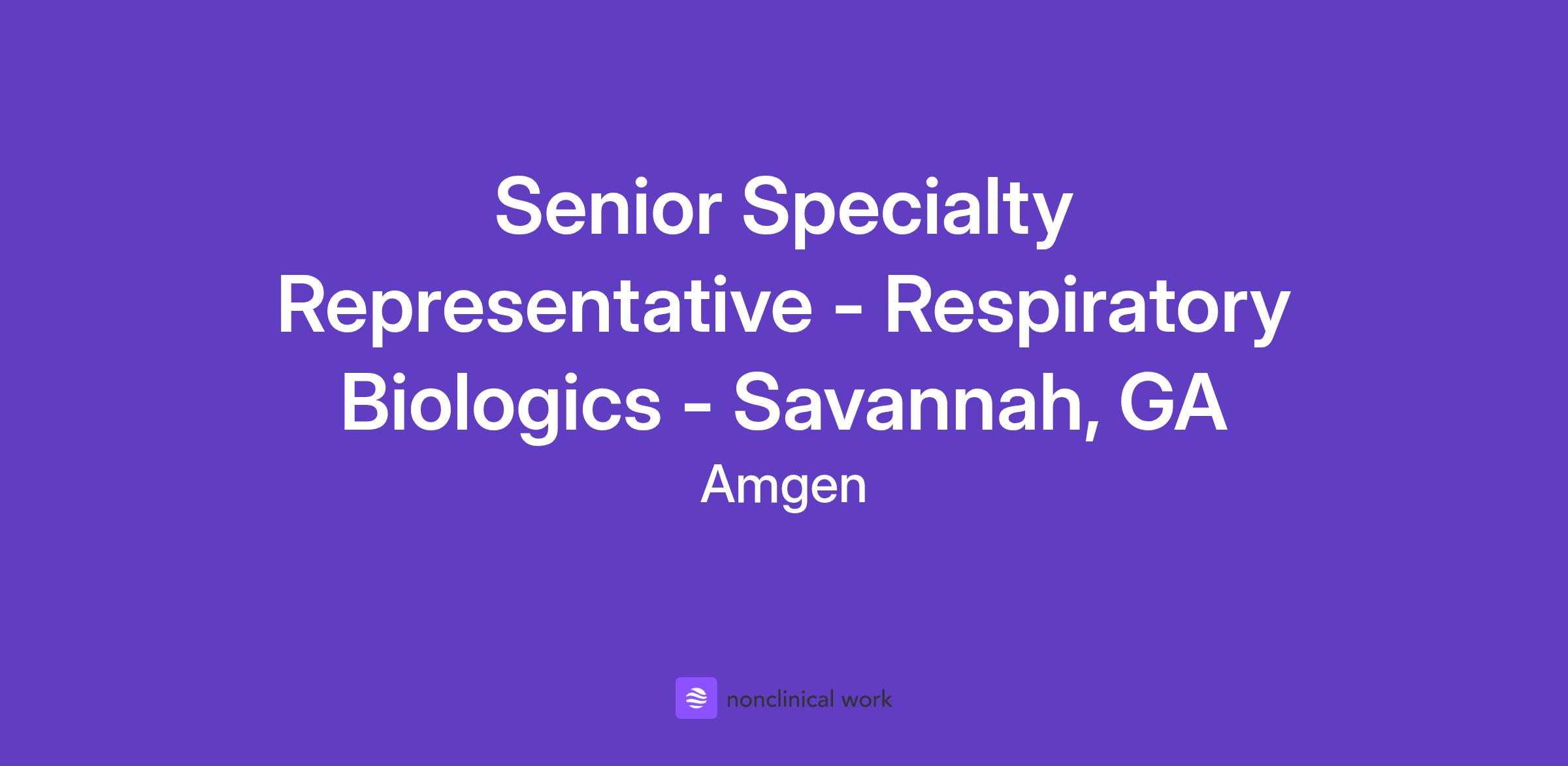Career Category Sales Job Description Territory covers: Savannah, Brunswick, Augusta, Statesboro, Dublin, Albany, Tifton, Moultrie, Thomasville, Valdosta, Warner Robins, Macon Relocation is not provided for this role. HOW MIGHT YOU DEFY IMAGINATION? Join Amgen’s Mission of Serving Patients At Amgen, if you feel like you’re part of something bigger, it’s because you are. Our shared mission—to serve patients living with serious illnesses—drives all that we do. Since 1980, we’ve helped pioneer the world of biotech in our fight against the world’s toughest diseases. With our focus on four therapeutic areas –Oncology, Inflammation, General Medicine, and Rare Disease– we reach millions of patients each year. As a member of the Amgen team, you’ll help make a lasting impact on the lives of patients as we research, manufacture, and deliver innovative medicines to help people live longer, fuller happier lives. Our award-winning culture is collaborative, innovative, and science based. If you have a passion for challenges and the opportunities that lay within them, you’ll thrive as part of the Amgen team. Join us and transform the lives of patients while transforming your career. Senior Specialty Representative Live What you will do Tezspire Let’s do this. Let’s change the world. In this vital role you will be the liaison to our customers by providing clinical knowledge of our products to medical professionals. Amgen's medicines treat serious illnesses and our research address diseases with a limited number of treatment options. With a robust and differentiated pipeline, Amgen remains committed to advancing science to dramatically improve people's lives. As a values-based organization with a powerful sense of shared purpose toward our mission: to serve patients, we are actively searching for a Senior Specialty Representative to deliver on this commitment to patients. Amgen supports and encourages our team members to have long term, fulfilling and meaningful careers through challenging assignments, career development, and valuable opportunities such as this opportunity to craft a long-term career with Amgen. The Senior Specialty Representative acts as the primary customer contact and is responsible for implementing marketing strategy and promoting Amgen products as led by the District Manager. Our Senior Specialty Representatives achieve territory sales by utilizing their background and experience to: Provide current and comprehensive clinical knowledge of Amgen's products and effectively communicate the clinical and economic benefits of the products to medical professionals Perform as a sales leader to achieve territory sales by implementing and delivering branded sales messages strategies. This includes: delivering branded sales messages, implementing planned programs, scheduling and following-up with medical educational programs, and achieving or exceeding sales targets Utilize internal and external relationships to service and manage accounts which includes: ensuring product access, resolving/triage reimbursement issues, and maintaining product contracts Analyze business effectiveness of sales activities and territory analysis, as well as develop territory plans with the District Manager Have passion for our products and sustain that passion through the entire sales cycle while always building our brand, never losing sight of how we serve patients Partner with other colleagues to share best practices and be in a state of continuous curiosity and learning to help grow as a Senior Specialty Representative Leverage passion for disease state awareness, industry, regulatory and competitive changes to deliver agreed results Win What we expect of you We are all different, yet we all use our unique contributions to serve patients. The sales professional we seek is a go-getter with these qualifications. Basic Qualifications: Bachelor’s degree and 3 years of sales experience and/or clinical experience in healthcare / scientific field that is not sales related OR Associate degree and 6 years of sales experience and/or clinical experience in healthcare / scientific field that is not sales related OR High school diploma / GED and 8 years of sales experience and/or clinical experience in healthcare / scientific field that is not sales related Preferred Qualifications: Three or more years of sales experience within pharmaceutical, biotech or medical device industry Product or hospital sales experience in the areas of oncology, nephrology, dermatology, rheumatology, inflammation, cardiology, neurology, endocrinology, hepatology, gastroenterology or infectious diseases; and the diseases and treatments involved with these specialties Local market knowledge A Bachelor's degree in Life Sciences or Business Administration Adaptability with our Core Competencies: Planning and Organizing; Leveraging Business, Industry, and Technical Knowledge; Communicating with Impact; Driving for Results; and Cultivating Internal and External Relationships. Thrive What you can expect of us As we work to develop treatments that take care of others, we also work to care for your professional and personal growth and well-being. From our competitive benefits to our collaborative culture, we’ll support your journey every step of the way. The expected annual salary range for this role in the U.S. (excluding Puerto Rico) is $120,317 to $147,054. Actual salary will vary based on several factors including, but not limited to, relevant skills, experience, and qualifications. In addition to the base salary, Amgen offers a Total Rewards Plan, based on eligibility, comprising of health and welfare plans for staff and eligible dependents, financial plans with opportunities to save towards retirement or other goals, work/life balance, and career development opportunities that may include: A comprehensive employee benefits package, including a Retirement and Savings Plan with generous company contributions, group medica