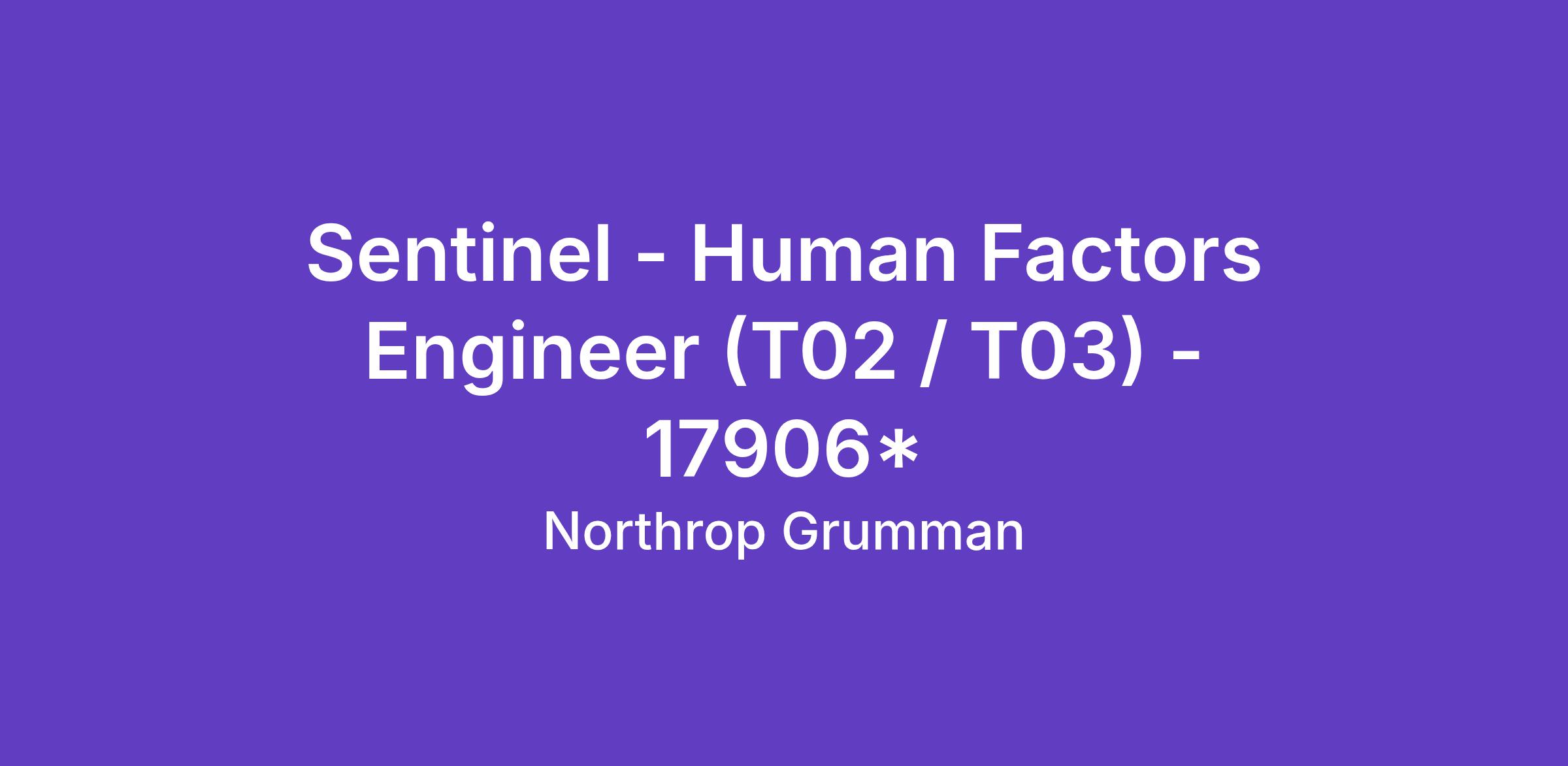 Northrop Grumman Defense Systems is seeking an Human Factors Engineer (T02 level) / Human Factors Principal Engineer (T03 level). This position is located in Roy, Utah or Huntsville, Alabama and supports the Sentinel program.