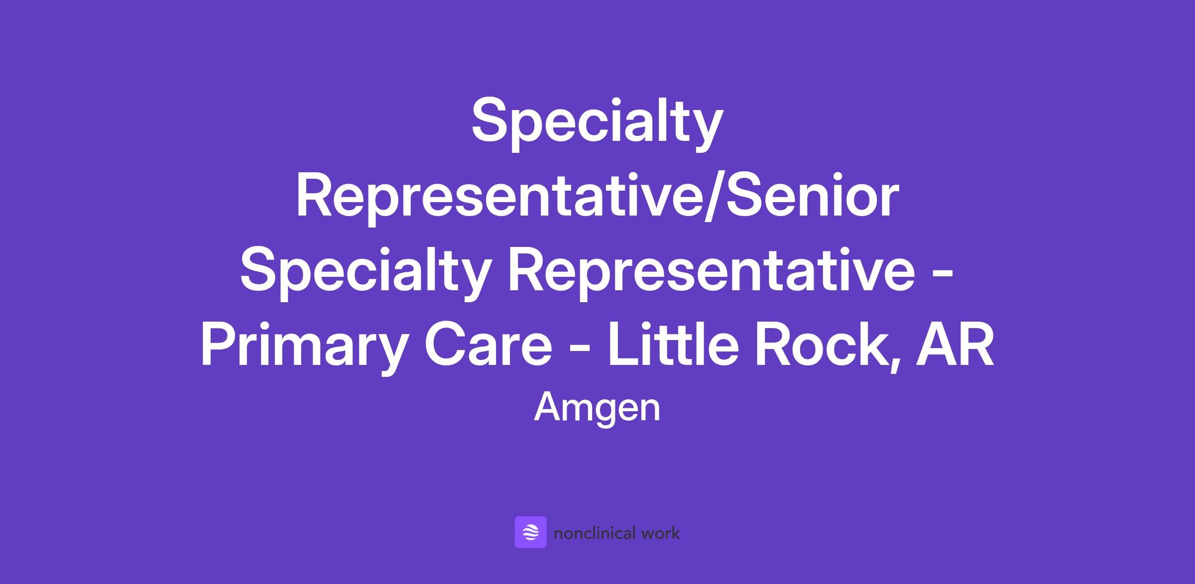 Career Category Sales Job Description Territory covers: Little Rock, AR; Fayetteville, AR Relocation is not offered for this role. Join Amgen’s Mission of Serving Patients At Amgen, if you feel like you’re part of something bigger, it’s because you are. Our shared mission—to serve patients living with serious illnesses—drives all that we do. Since 1980, we’ve helped pioneer the world of biotech in our fight against the world’s toughest diseases. With our focus on four therapeutic areas –Oncology, Inflammation, General Medicine, and Rare Disease– we reach millions of patients each year. As a member of the Amgen team, you’ll help make a lasting impact on the lives of patients as we research, manufacture, and deliver innovative medicines to help people live longer, fuller happier lives. Our award-winning culture is collaborative, innovative, and science based. If you have a passion for challenges and the opportunities that lay within them, you’ll thrive as part of the Amgen team. Join us and transform the lives of patients while transforming your career. SPECIALTY REPRESENTATIVE/SENIOR SPECIALTY REPRESENTATIVE Live What you will do Let’s do this! Let’s change the world! In this vital role you will be the connection to our customers by providing clinical knowledge of our products to medical professionals and helping them navigate the complex payer environment. We are actively searching for a Specialty Representative or Senior Specialty Representative to deliver on our commitment to serve patients. The Specialty Representative/Senior Specialty Representative acts as the primary customer contact and is responsible for implementing marketing strategy and promoting Amgen products as led by the District Manager. Responsibilities include: Provide current and comprehensive knowledge of Amgen's products and effectively communicate the clinical benefits to medical professionals to drive appropriate utilization of the products Perform as a sales leader to achieve territory sales by delivering branded sales messages, conducting planned programs, scheduling and following-up with medical educational programs, and achieving or exceeding sales targets through both in-person and virtual engagement Develop relationships to service and manage accounts which may include: customizing discussions and customer interactions based on understanding of customer needs, ensuring product access, resolving/triage reimbursement issues, and maintaining product contracts Provide feedback on marketing strategy, analyze business effectiveness of sales activities and territory analysis, and develop territory plans with the District Manager Partner with other colleagues to share best practices and seek to learn and grow as a Specialty Representative/Senior Specialty Representative Demonstrate passion for our products and sustain that passion through the entire sales cycle while always building our brand and never losing sight of how we serve patients Uphold Amgen Values: Be Science-Based; Compete Intensely and Win; Create Value for Patients, Staff, and Stockholders; Be Ethical; Trust and Respect Each Other; Ensure Quality; Work in Teams; Collaborate, Communicate, and Be Accountable Win What we expect of you We are all different, yet we all use our unique contributions to serve patients. The sales professional we seek is a motivated individual with these qualifications. Basic Qualifications (Specialty Representative): Bachelor's Degree OR Associate's degree and 4 years of Sales experience OR High school diploma/GED and 6 years of Sales experience Basic Qualifications (Senior Specialty Representative): Bachelor’s degree and 3 years of sales experience and/or clinical experience in healthcare / scientific field that is not sales related OR Associate degree and 6 years of sales experience and/or clinical experience in healthcare / scientific field that is not sales related OR High school diploma / GED and 8 years of sales experience and/or clinical experience in healthcare / scientific field that is not sales related Preferred Qualifications: 1–3 years of sales, marketing, or clinical experience (pharmaceutical or healthcare industry preferred) Product or hospital sales experience in the areas of oncology, cardiology, inflammation, nephrology, dermatology, rheumatology, neurology, endocrinology, hepatology, gastroenterology, bone health, respiratory, hematology, or infectious diseases; and the diseases and treatments involved with these specialties Some experience and/or pre-graduate sales or leadership training, or a demonstrated track record of success under pressure A hunter’s mindset — hungry, ambitious, and driven to exceed goals Strong communication, storytelling, and persuasion skills with the ability to influence diverse audiences Genuine passion for sales, relationship-building, and improving patient outcomes Curiosity and learning agility — eager to absorb product knowledge and industry insights quickly Resilience and adaptability — thrives in a fast-paced, competitive environment Entrepreneurial spirit — proactive, self-motivated, and resourceful in finding creative ways to win business Desire to build a long-term career in pharmaceutical sales, with a focus on the cardiovascular therapeutic area Demonstrated integrity, professionalism, and accountability in all interactions Bachelor's degree in Life Sciences or Business Administration Adaptability with our Core Competencies: Sales Planning and Organizing; Leveraging Business, Industry, and Technical Knowledge; Communicating with Impact; Driving for Results; and Cultivating Internal and External Relationships. Local Market knowledge This position is open to candidates of various backgrounds and experience levels. The role level/title will be chosen based on the candidate’s match to basic qualifications and level of experience required for this geography. Thrive What you can expect of us As we work to develop treatments that take 