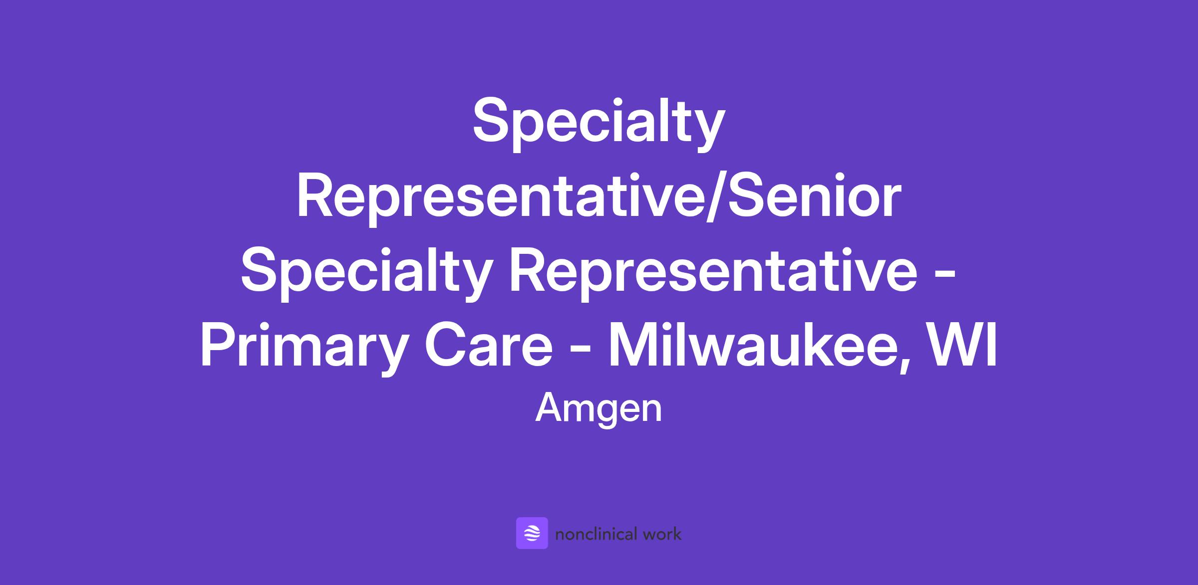 Career Category Sales Job Description Territory covers: Milwaukee, WI; Green Bay, WI; Appleton, WI Relocation is not offered for this role. Join Amgen’s Mission of Serving Patients At Amgen, if you feel like you’re part of something bigger, it’s because you are. Our shared mission—to serve patients living with serious illnesses—drives all that we do. Since 1980, we’ve helped pioneer the world of biotech in our fight against the world’s toughest diseases. With our focus on four therapeutic areas –Oncology, Inflammation, General Medicine, and Rare Disease– we reach millions of patients each year. As a member of the Amgen team, you’ll help make a lasting impact on the lives of patients as we research, manufacture, and deliver innovative medicines to help people live longer, fuller happier lives. Our award-winning culture is collaborative, innovative, and science based. If you have a passion for challenges and the opportunities that lay within them, you’ll thrive as part of the Amgen team. Join us and transform the lives of patients while transforming your career. SPECIALTY REPRESENTATIVE/SENIOR SPECIALTY REPRESENTATIVE Live What you will do Let’s do this! Let’s change the world! In this vital role you will be the connection to our customers by providing clinical knowledge of our products to medical professionals and helping them navigate the complex payer environment. We are actively searching for a Specialty Representative or Senior Specialty Representative to deliver on our commitment to serve patients. The Specialty Representative/Senior Specialty Representative acts as the primary customer contact and is responsible for implementing marketing strategy and promoting Amgen products as led by the District Manager. Responsibilities include: Provide current and comprehensive knowledge of Amgen's products and effectively communicate the clinical benefits to medical professionals to drive appropriate utilization of the products Perform as a sales leader to achieve territory sales by delivering branded sales messages, conducting planned programs, scheduling and following-up with medical educational programs, and achieving or exceeding sales targets through both in-person and virtual engagement Develop relationships to service and manage accounts which may include: customizing discussions and customer interactions based on understanding of customer needs, ensuring product access, resolving/triage reimbursement issues, and maintaining product contracts Provide feedback on marketing strategy, analyze business effectiveness of sales activities and territory analysis, and develop territory plans with the District Manager Partner with other colleagues to share best practices and seek to learn and grow as a Specialty Representative/Senior Specialty Representative Demonstrate passion for our products and sustain that passion through the entire sales cycle while always building our brand and never losing sight of how we serve patients Uphold Amgen Values: Be Science-Based; Compete Intensely and Win; Create Value for Patients, Staff, and Stockholders; Be Ethical; Trust and Respect Each Other; Ensure Quality; Work in Teams; Collaborate, Communicate, and Be Accountable Win What we expect of you We are all different, yet we all use our unique contributions to serve patients. The sales professional we seek is a motivated individual with these qualifications. Basic Qualifications (Specialty Representative): Bachelor's Degree OR Associate's degree and 4 years of Sales experience OR High school diploma/GED and 6 years of Sales experience Basic Qualifications (Senior Specialty Representative): Bachelor’s degree and 3 years of sales experience and/or clinical experience in healthcare / scientific field that is not sales related OR Associate degree and 6 years of sales experience and/or clinical experience in healthcare / scientific field that is not sales related OR High school diploma / GED and 8 years of sales experience and/or clinical experience in healthcare / scientific field that is not sales related Preferred Qualifications: 1–3 years of sales, marketing, or clinical experience (pharmaceutical or healthcare industry preferred) Product or hospital sales experience in the areas of oncology, cardiology, inflammation, nephrology, dermatology, rheumatology, neurology, endocrinology, hepatology, gastroenterology, bone health, respiratory, hematology, or infectious diseases; and the diseases and treatments involved with these specialties Some experience and/or pre-graduate sales or leadership training, or a demonstrated track record of success under pressure A hunter’s mindset — hungry, ambitious, and driven to exceed goals Strong communication, storytelling, and persuasion skills with the ability to influence diverse audiences Genuine passion for sales, relationship-building, and improving patient outcomes Curiosity and learning agility — eager to absorb product knowledge and industry insights quickly Resilience and adaptability — thrives in a fast-paced, competitive environment Entrepreneurial spirit — proactive, self-motivated, and resourceful in finding creative ways to win business Desire to build a long-term career in pharmaceutical sales, with a focus on the cardiovascular therapeutic area Demonstrated integrity, professionalism, and accountability in all interactions Bachelor's degree in Life Sciences or Business Administration Adaptability with our Core Competencies: Sales Planning and Organizing; Leveraging Business, Industry, and Technical Knowledge; Communicating with Impact; Driving for Results; and Cultivating Internal and External Relationships. Local Market knowledge This position is open to candidates of various backgrounds and experience levels. The role level/title will be chosen based on the candidate’s match to basic qualifications and level of experience required for this geography. Thrive What you can expect of us As we work to develop treatments t
