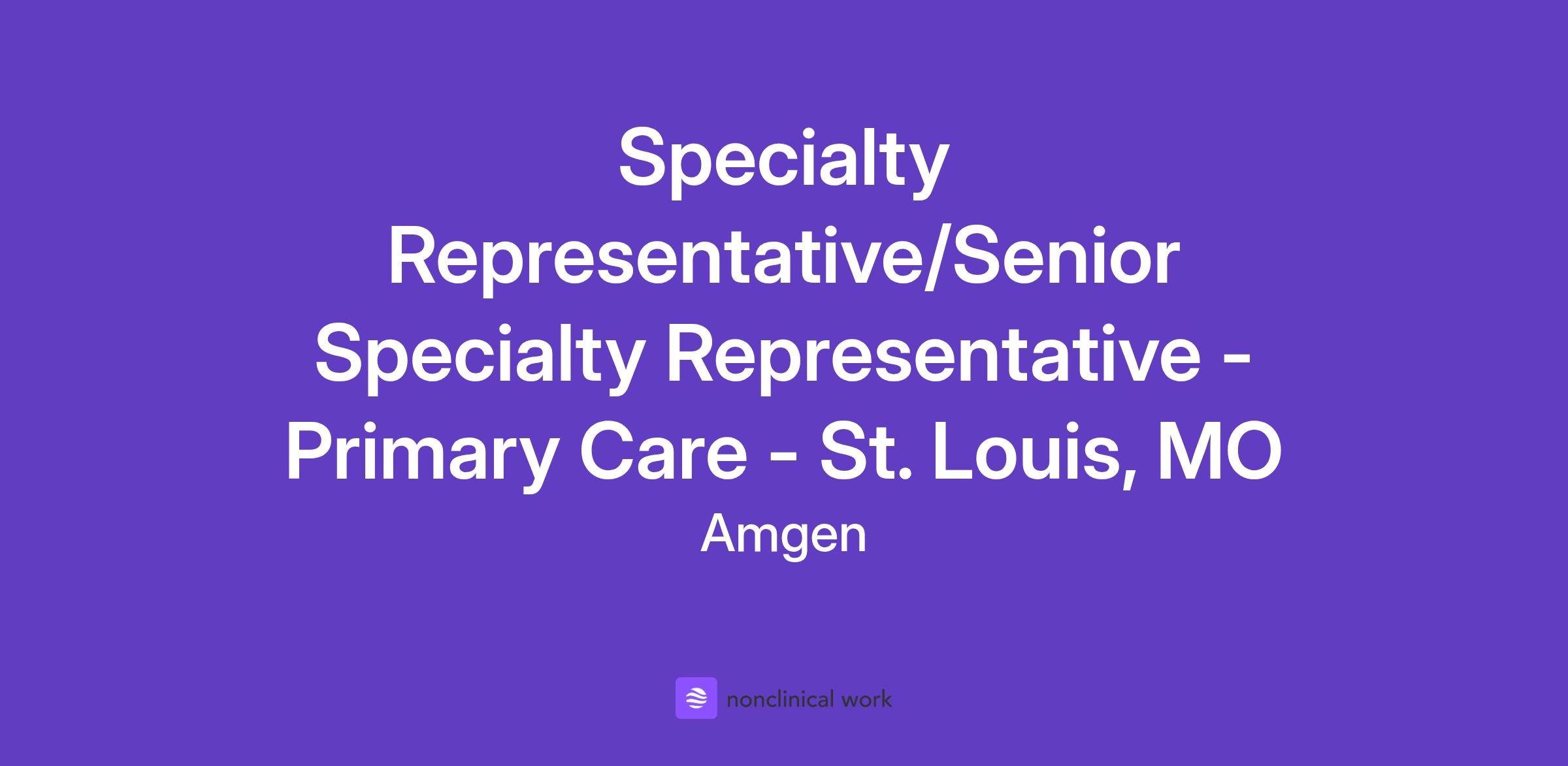 Career Category Sales Job Description Territory covers: Saint Louis, MO; Saint Charles, MO; Springfield, IL Relocation is not offered for this role. Join Amgen’s Mission of Serving Patients At Amgen, if you feel like you’re part of something bigger, it’s because you are. Our shared mission—to serve patients living with serious illnesses—drives all that we do. Since 1980, we’ve helped pioneer the world of biotech in our fight against the world’s toughest diseases. With our focus on four therapeutic areas –Oncology, Inflammation, General Medicine, and Rare Disease– we reach millions of patients each year. As a member of the Amgen team, you’ll help make a lasting impact on the lives of patients as we research, manufacture, and deliver innovative medicines to help people live longer, fuller happier lives. Our award-winning culture is collaborative, innovative, and science based. If you have a passion for challenges and the opportunities that lay within them, you’ll thrive as part of the Amgen team. Join us and transform the lives of patients while transforming your career. SPECIALTY REPRESENTATIVE/SENIOR SPECIALTY REPRESENTATIVE Live What you will do Let’s do this! Let’s change the world! In this vital role you will be the connection to our customers by providing clinical knowledge of our products to medical professionals and helping them navigate the complex payer environment. We are actively searching for a Specialty Representative or Senior Specialty Representative to deliver on our commitment to serve patients. The Specialty Representative/Senior Specialty Representative acts as the primary customer contact and is responsible for implementing marketing strategy and promoting Amgen products as led by the District Manager. Responsibilities include: Provide current and comprehensive knowledge of Amgen's products and effectively communicate the clinical benefits to medical professionals to drive appropriate utilization of the products Perform as a sales leader to achieve territory sales by delivering branded sales messages, conducting planned programs, scheduling and following-up with medical educational programs, and achieving or exceeding sales targets through both in-person and virtual engagement Develop relationships to service and manage accounts which may include: customizing discussions and customer interactions based on understanding of customer needs, ensuring product access, resolving/triage reimbursement issues, and maintaining product contracts Provide feedback on marketing strategy, analyze business effectiveness of sales activities and territory analysis, and develop territory plans with the District Manager Partner with other colleagues to share best practices and seek to learn and grow as a Specialty Representative/Senior Specialty Representative Demonstrate passion for our products and sustain that passion through the entire sales cycle while always building our brand and never losing sight of how we serve patients Uphold Amgen Values: Be Science-Based; Compete Intensely and Win; Create Value for Patients, Staff, and Stockholders; Be Ethical; Trust and Respect Each Other; Ensure Quality; Work in Teams; Collaborate, Communicate, and Be Accountable Win What we expect of you We are all different, yet we all use our unique contributions to serve patients. The sales professional we seek is a motivated individual with these qualifications. Basic Qualifications (Specialty Representative): Bachelor's Degree OR Associate's degree and 4 years of Sales experience OR High school diploma/GED and 6 years of Sales experience Basic Qualifications (Senior Specialty Representative): Bachelor’s degree and 3 years of sales experience and/or clinical experience in healthcare / scientific field that is not sales related OR Associate degree and 6 years of sales experience and/or clinical experience in healthcare / scientific field that is not sales related OR High school diploma / GED and 8 years of sales experience and/or clinical experience in healthcare / scientific field that is not sales related Preferred Qualifications: 1–3 years of sales, marketing, or clinical experience (pharmaceutical or healthcare industry preferred) Product or hospital sales experience in the areas of oncology, cardiology, inflammation, nephrology, dermatology, rheumatology, neurology, endocrinology, hepatology, gastroenterology, bone health, respiratory, hematology, or infectious diseases; and the diseases and treatments involved with these specialties Some experience and/or pre-graduate sales or leadership training, or a demonstrated track record of success under pressure A hunter’s mindset — hungry, ambitious, and driven to exceed goals Strong communication, storytelling, and persuasion skills with the ability to influence diverse audiences Genuine passion for sales, relationship-building, and improving patient outcomes Curiosity and learning agility — eager to absorb product knowledge and industry insights quickly Resilience and adaptability — thrives in a fast-paced, competitive environment Entrepreneurial spirit — proactive, self-motivated, and resourceful in finding creative ways to win business Desire to build a long-term career in pharmaceutical sales, with a focus on the cardiovascular therapeutic area Demonstrated integrity, professionalism, and accountability in all interactions Bachelor's degree in Life Sciences or Business Administration Adaptability with our Core Competencies: Sales Planning and Organizing; Leveraging Business, Industry, and Technical Knowledge; Communicating with Impact; Driving for Results; and Cultivating Internal and External Relationships. Local Market knowledge This position is open to candidates of various backgrounds and experience levels. The role level/title will be chosen based on the candidate’s match to basic qualifications and level of experience required for this geography. Thrive What you can expect of us As we work to develop tre