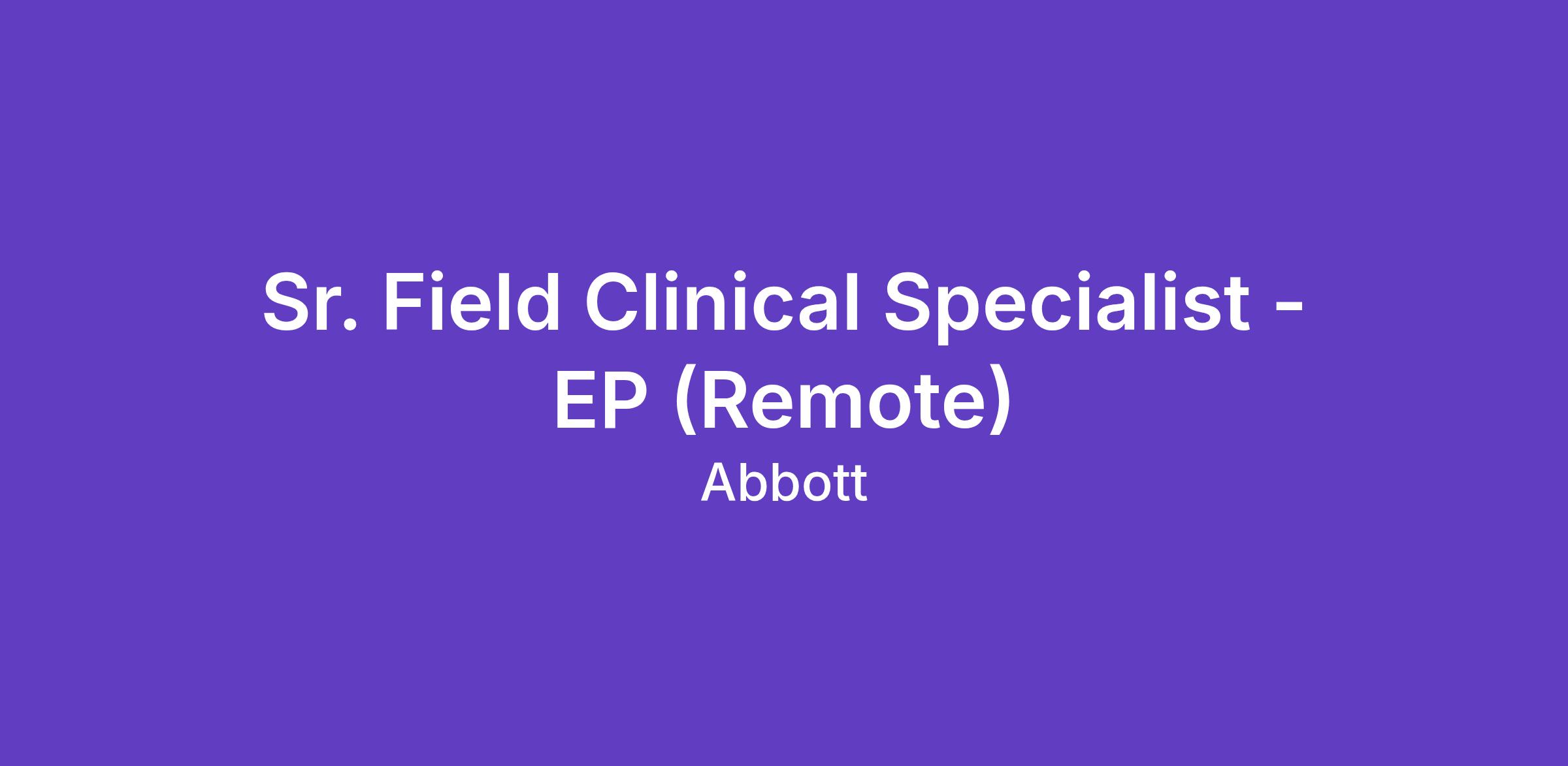 We are seeking an experienced, high caliber Senior Field Clinical Specialist - Electrophysiology. This position will be primarily responsible for demonstrated and consistent technical and clinical support to the Clinical Affairs Organization, with specific focus on Electrophysiology (EP) Business Unit (BU) technologies and therapy areas.