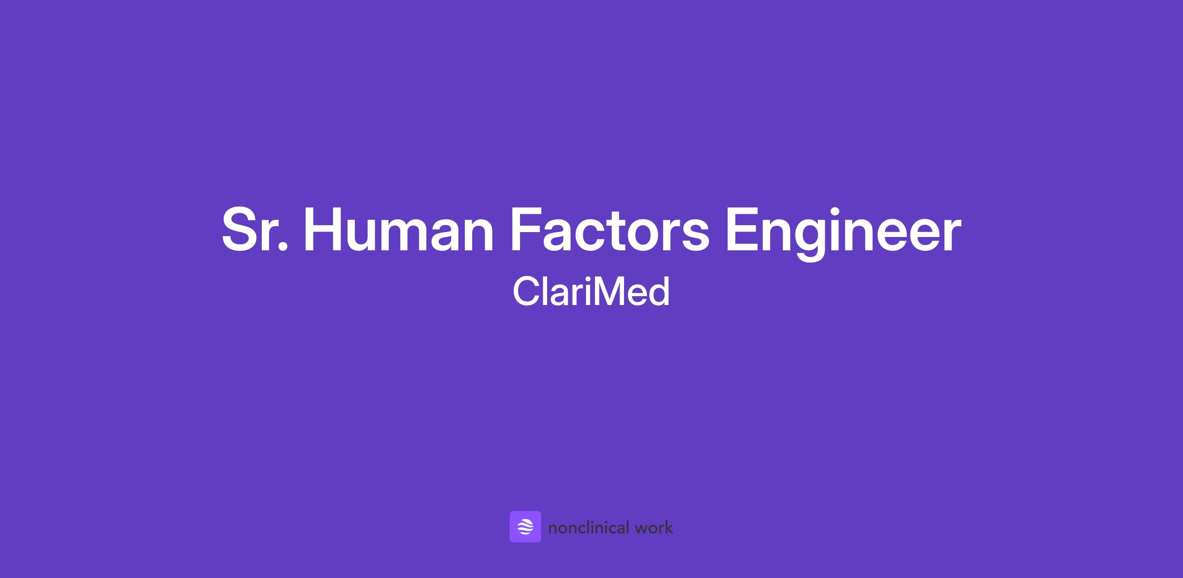 As a Senior Human Factors Engineer at ClariMed, you will lead human factors activities across the full product development lifecycle. You’ll partner directly with clients, guide usability strategy, and execute formative and summative evaluations for medical device programs. This role is ideal for someone who is excited by hands-on research, technical rigor, and the opportunity to shape products that improve patient and clinician outcomes.