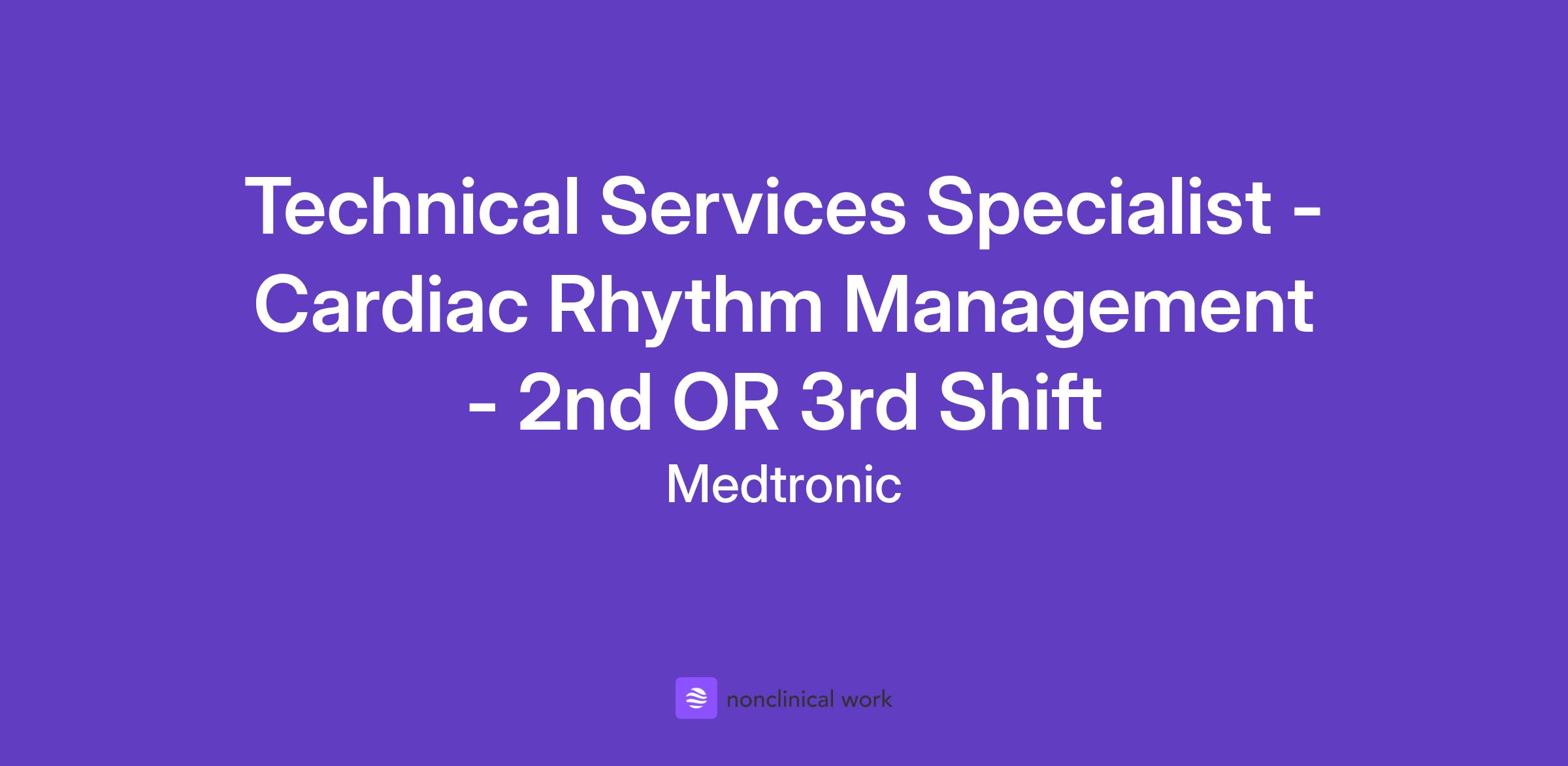 We anticipate the application window for this opening will close on - 27 Oct 2025 At Medtronic you can begin a life-long career of exploration and innovation, while helping champion healthcare access and equity for all. You’ll lead with purpose, breaking down barriers to innovation in a more connected, compassionate world. A Day in the Life At Medtronic, we bring bold ideas forward with speed and decisiveness to put patients first in everything we do. This position is remote to enhance our competitive edge and expand our cross-functional collaboration efforts. Careers that Change Lives In this fast-paced exciting role as a Technical Services Specialist you will have responsibility for supporting accounts for remote monitoring for our CareLink Express Service. This enables acute care settings to quickly obtain data regarding the status of Medtronic implanted cardiac devices, facilitating faster treatment decisions. We believe that when people from different cultures, genders, and points of view come together, innovation is the result —and everyone wins. Medtronic walks the walk, creating an inclusive culture where you can thrive. *Please note, this is an off-shift position with options for 2nd or 3rd shift. 2nd Shift: Monday - Friday, 12:00pm - 9:00pm, with every 3rd weekend requirement. 3rd Shift: Monday through Friday, 5:00pm - 2:00am CST with every 3rd weekend requirement. Our Cardiac Rhythm Management Integrated Operating Unit offers devices and therapies that treat patients with abnormal heart rhythms and heart failure. It is comprised of three key businesses: Cardiac Pacing Therapies, Defibrillation Solutions, and Cardiac Diagnostic Services. Together, we will transform the lives of people with cardiac arrhythmias and heart failure. Join a diverse team of innovators who bring their worldview, their unique backgrounds, and their individual life experiences to work every day. It’s no accident — we work hard to cultivate a workforce that reflects our patients and partners. We believe it’s the only way to drive healthcare forward and remain a global leader in medical technology and solutions. To learn more about Inclusion & Diversity at Medtronic Click Here A Day in the Life Review Cardiac Implantable Electronic Device data and provide quality analysis of the data Provide results to the facility in a specified timeframe via phone and written communications Provide accurate technical information to callers Responsible for receiving, documenting/reporting customer contacts and complaints for tracking, trending, and FDA reporting May train others on non-technical aspects (soft skills) of the job as well as the technical training and certification Able to operate a computer and work in multiple operating systems Answer incoming calls from customers Provide technical support to incoming callers who need assistance utilizing interrogation devices for pacemakers/implantable defibrillators Additional Information This position is a remote role that will not report to a Medtronic facility. All candidates must have access to reliable, high-speed internet, and a quiet, confidential, and disruption-free work environment. Must Have (Minimum Requirements): To be considered for this role, the minimum requirements must be evident on your resume. Bachelors degree required Minimum of 2 years of relevant experience OR Advanced degree Nice to Have (Preferred Qualifications): Experience with reading, interpreting device diagnostics and troubleshooting Cardiac Implantable Electrical Devices – pacemakers, ICDs and CRT-D devices Previous Cardiac experience Field sales or clinical specialist experience with cardiac devices Call center or customer service experience Medtronic CIED device product knowledge Remote Monitoring experience with Carelink and/or Carelink Express website Knowledge of FDA/GMP/MDR device regulations Advanced verbal and written communication skills Analytical/critical thinking skills/experience Time management skills Demonstrated ability to utilize computer and telephone efficiently Physical Job Requirements The above statements are intended to describe the general nature and level of work being performed by employees assigned to this position, but they are not an exhaustive list of all the required responsibilities and skills of this position. The physical demands described within the Responsibilities section of this job description are representative of those that must be met by an employee to successfully perform the essential functions of this job. Reasonable accommodations may be made to enable individuals with disabilities to perform the essential functions. For Office Roles: While performing the duties of this job, the employee is regularly required to be independently mobile. The employee is also required to interact with a computer, and communicate with peers and co-workers. Contact your manager or local HR to understand the Work Conditions and Physical requirements that may be specific to each role. Benefits & Compensation Medtronic offers a competitive Salary and flexible Benefits Package A commitment to our employees lives at the core of our values. We recognize their contributions. They share in the success they help to create. We offer a wide range of benefits, resources, and competitive compensation plans designed to support you at every career and life stage. Salary ranges for U.S (excl. PR) locations (USD):$72,800.00 - $109,200.00 This position is eligible for a short-term incentive called the Medtronic Incentive Plan (MIP). The base salary range is applicable across the United States, excluding Puerto Rico and specific locations in California. The offered rate complies with federal and local regulations and may vary based on factors such as experience, certification/education, market conditions, and location. Compensation and benefits information pertains solely to candidates hired within the United States (local market compensation and benefits will apply for o
