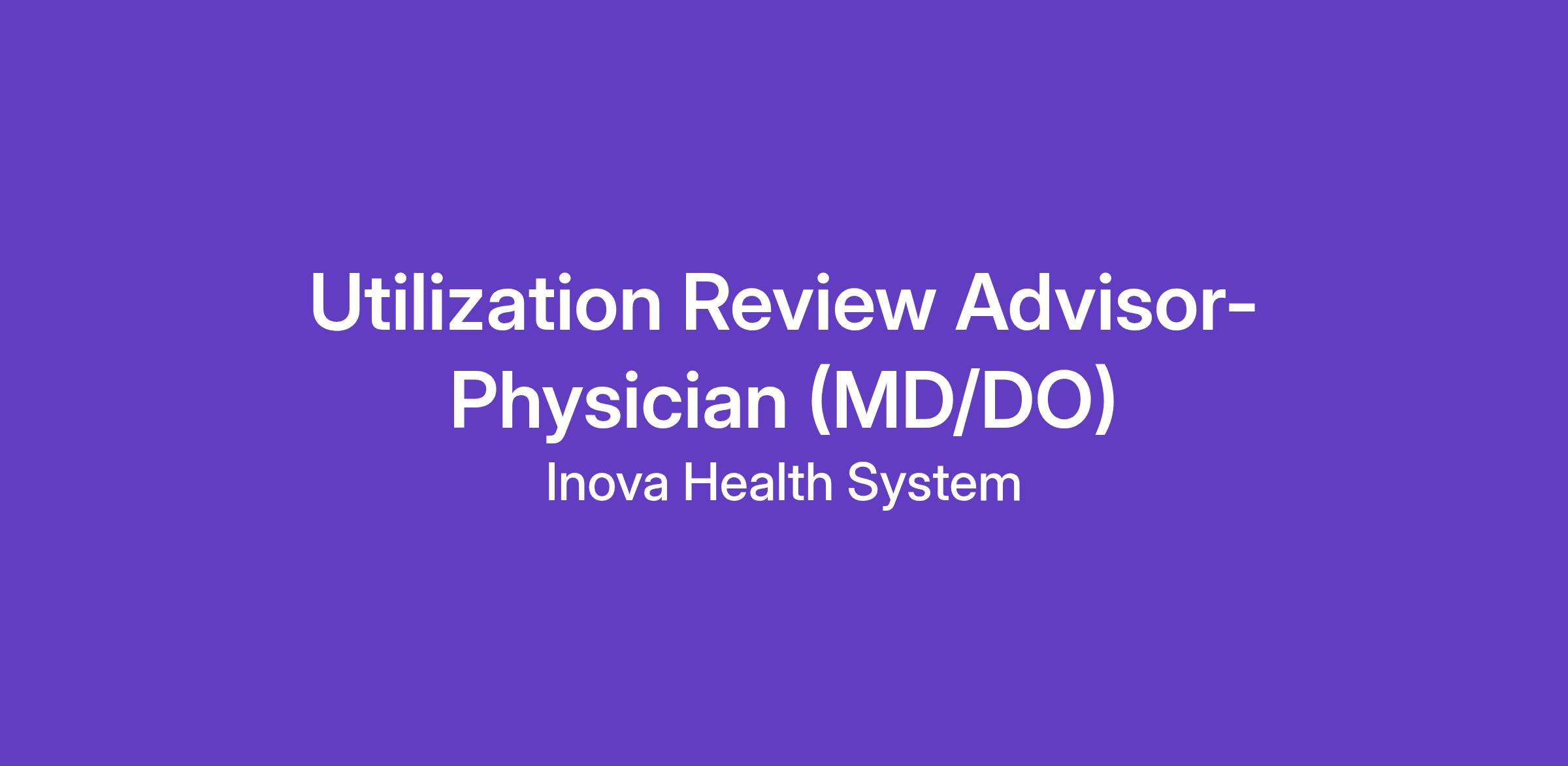 Inova Fairfax Medical Campus is looking for a dedicated physician advisor to join the Utilization Review Advisor team. This role will be full-time Position.