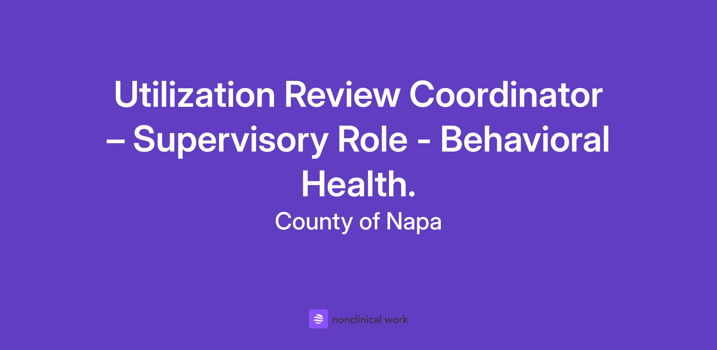 The Utilization Review (UR) Coordinator is a supervisory role that leads a small team ensuring that services provided through Napa County Behavioral Health are appropriate, clearly documented, and meet Medi-Cal billing rules. You’ll supervise two UR Clinicians, review data and trends, and work closely with program and fiscal staff to make sure services and records are accurate and complete.