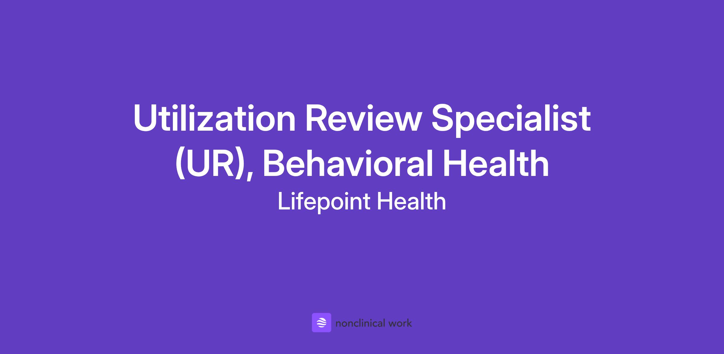 Utilization Review Specialist (UR), Behavioral Health