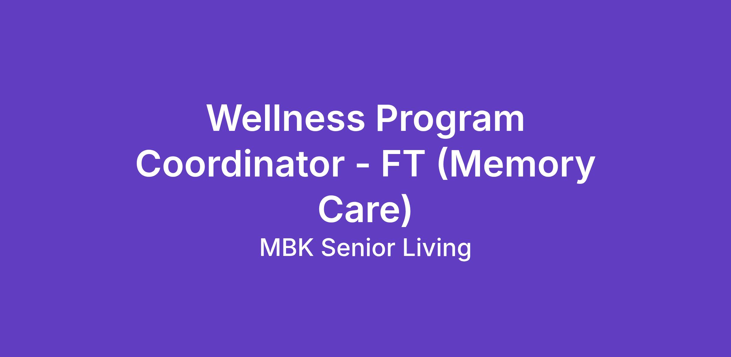 Job Summary: At MBK, we believe that every resident has the potential to experience joy and pleasure, connection with others, purpose, and self-esteem at every point on the spectrum of the cognitive changes we call dementia. The purpose of the Wellness Program Leader in memory care is to uncover and develop each resident’s potential to have these positive daily experiences and to grow. This goal is achieved by creatively planning and implementing a daily Wellness Program using the structures and content provided by MBK.